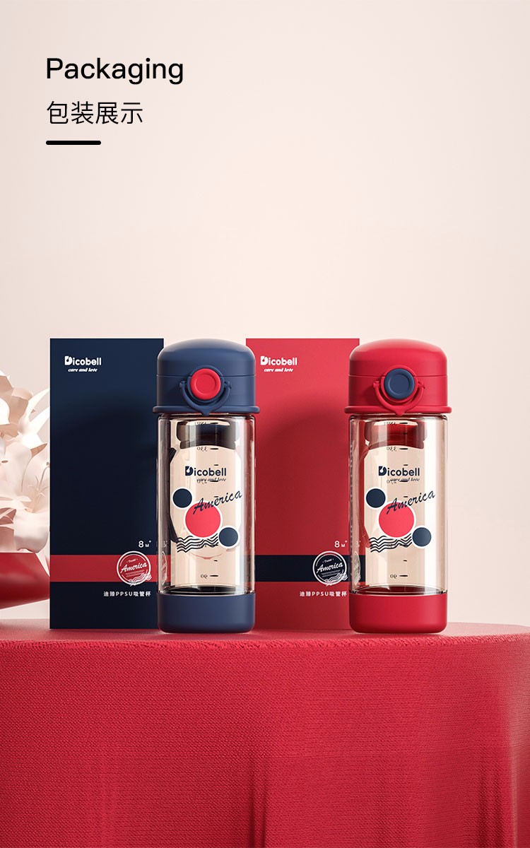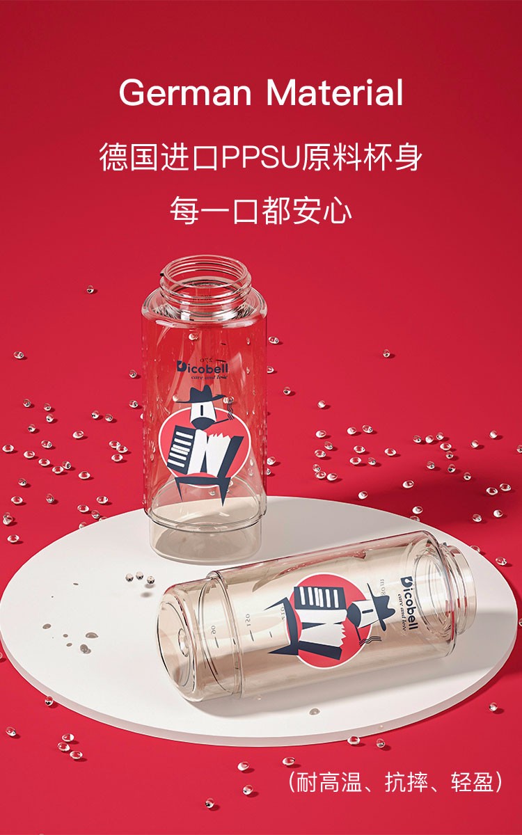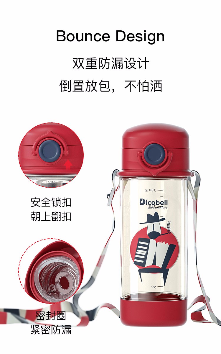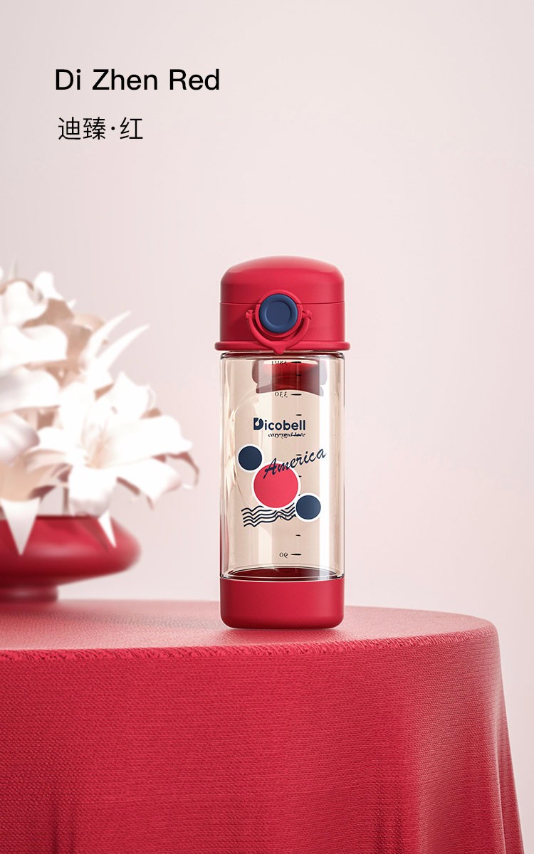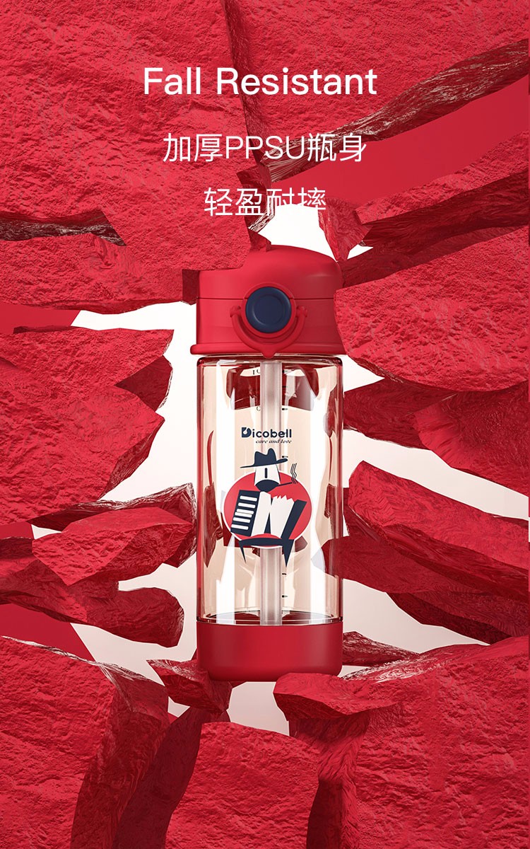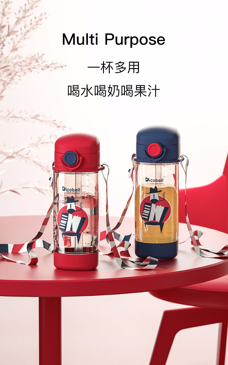 迪可贝儿(Dicobell)儿童吸管杯宝宝学饮杯幼儿园小学外出水杯 迪臻红【直饮杯】