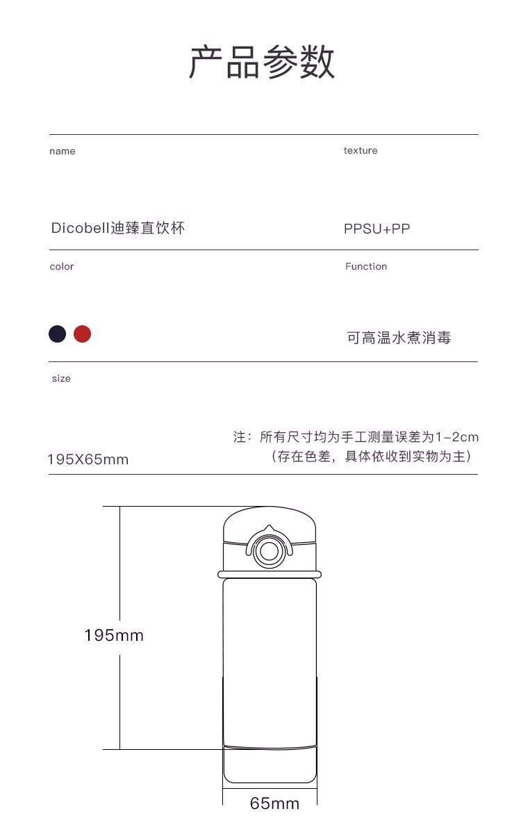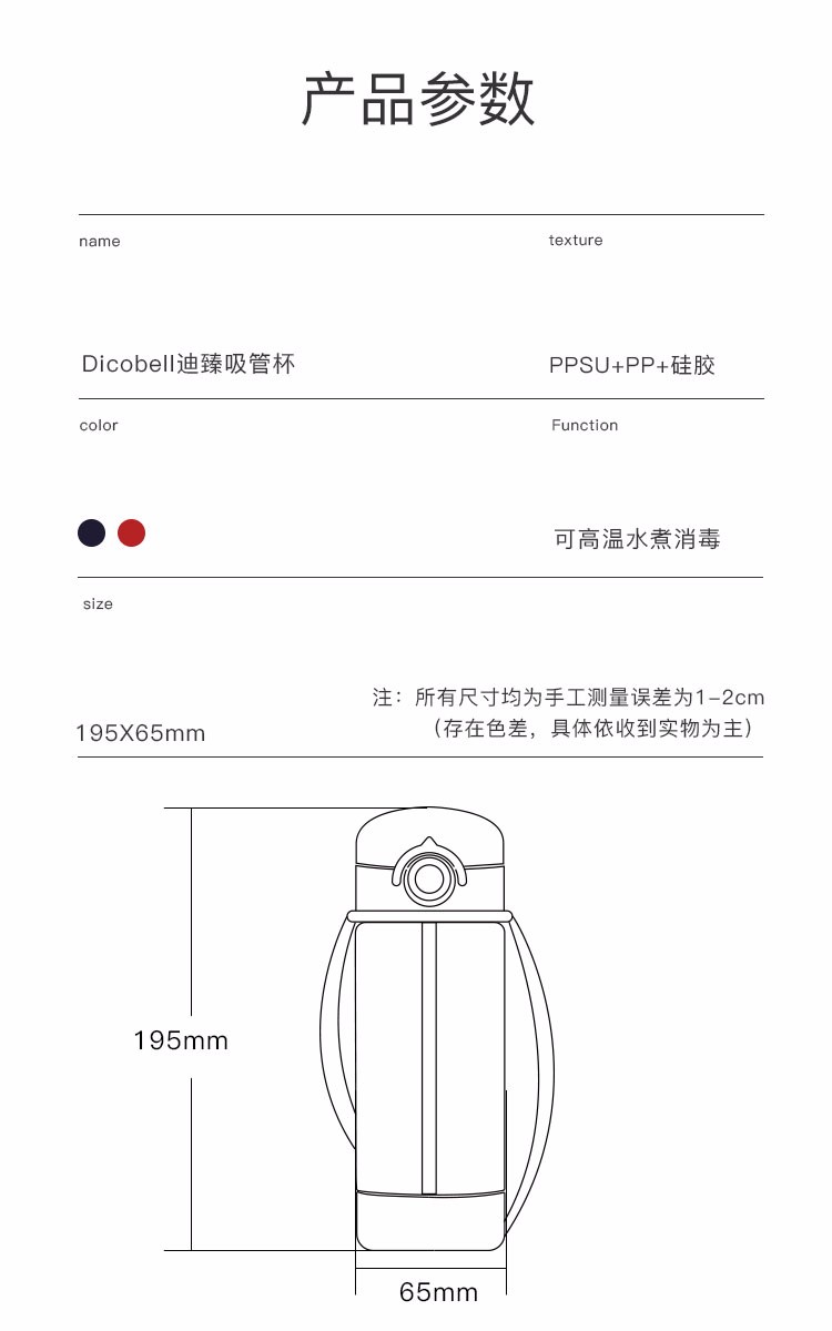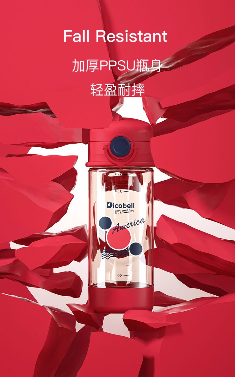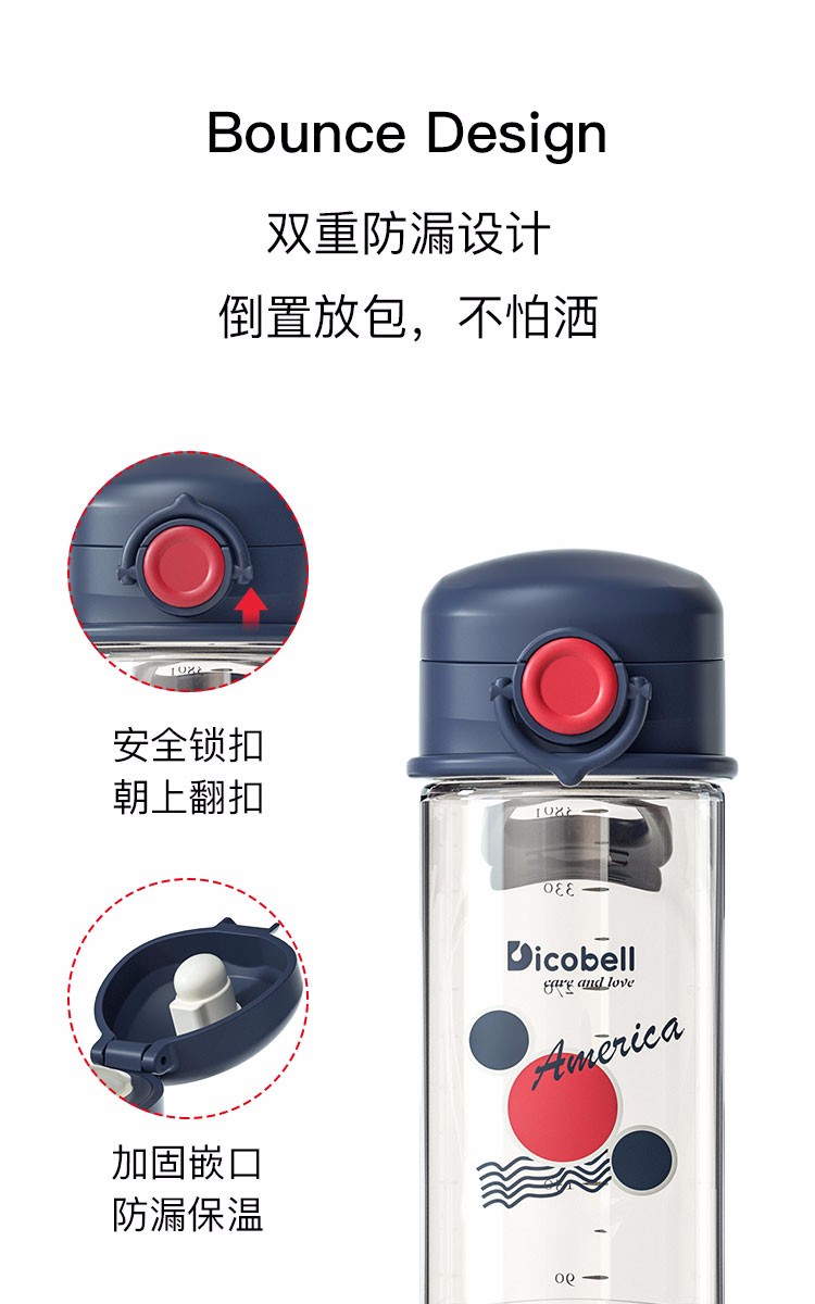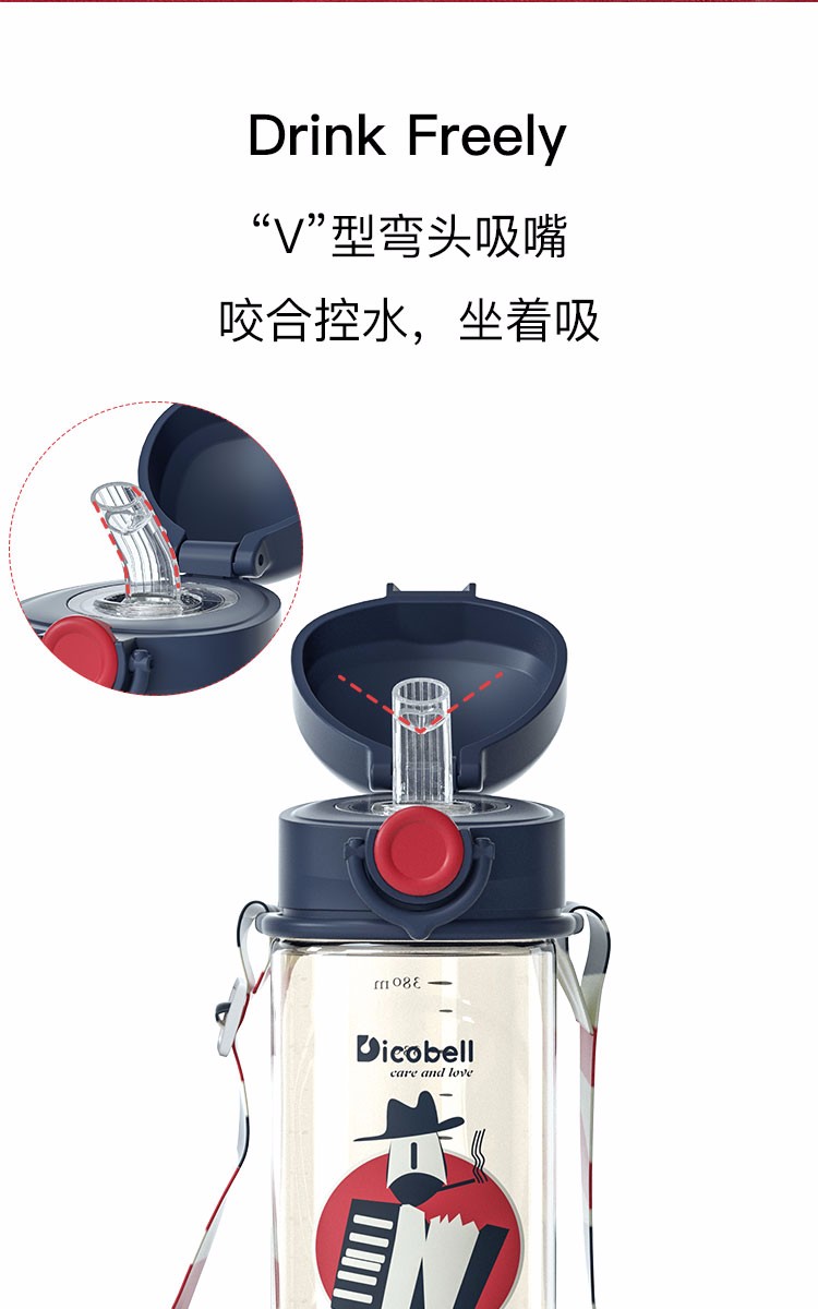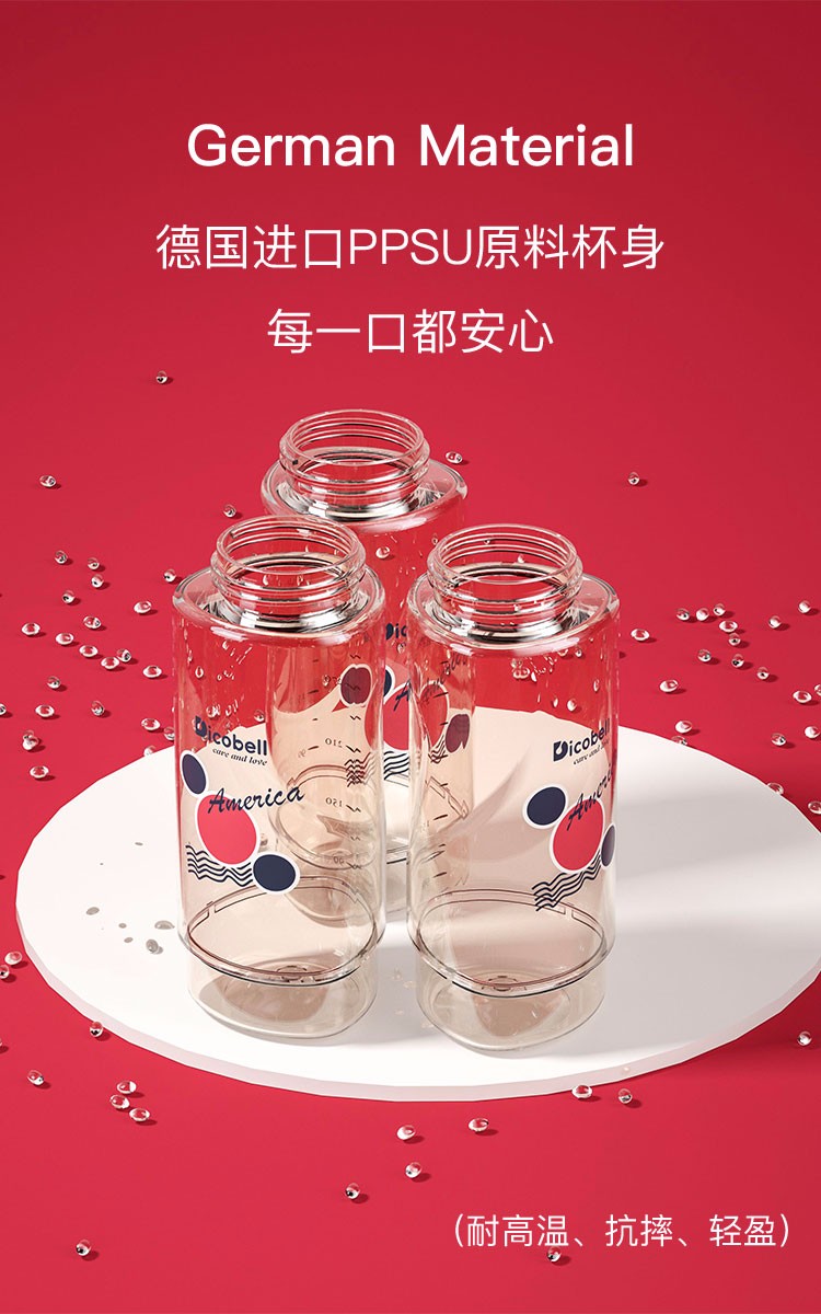 迪可贝儿(Dicobell)儿童吸管杯宝宝学饮杯幼儿园小学外出水杯 迪臻红【直饮杯】