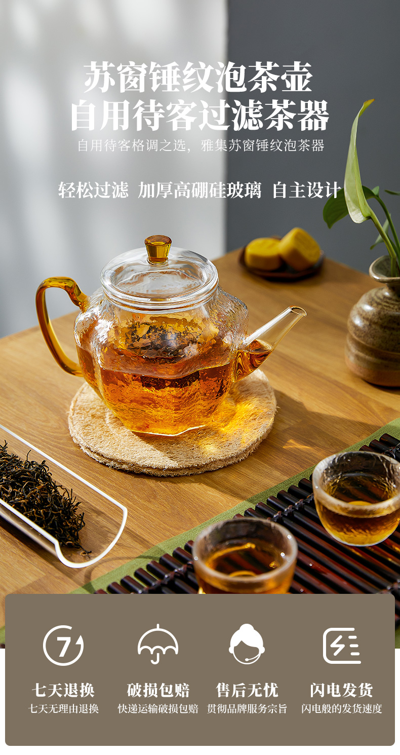 雅集玻璃壶苏窗锤纹泡茶壶700ml