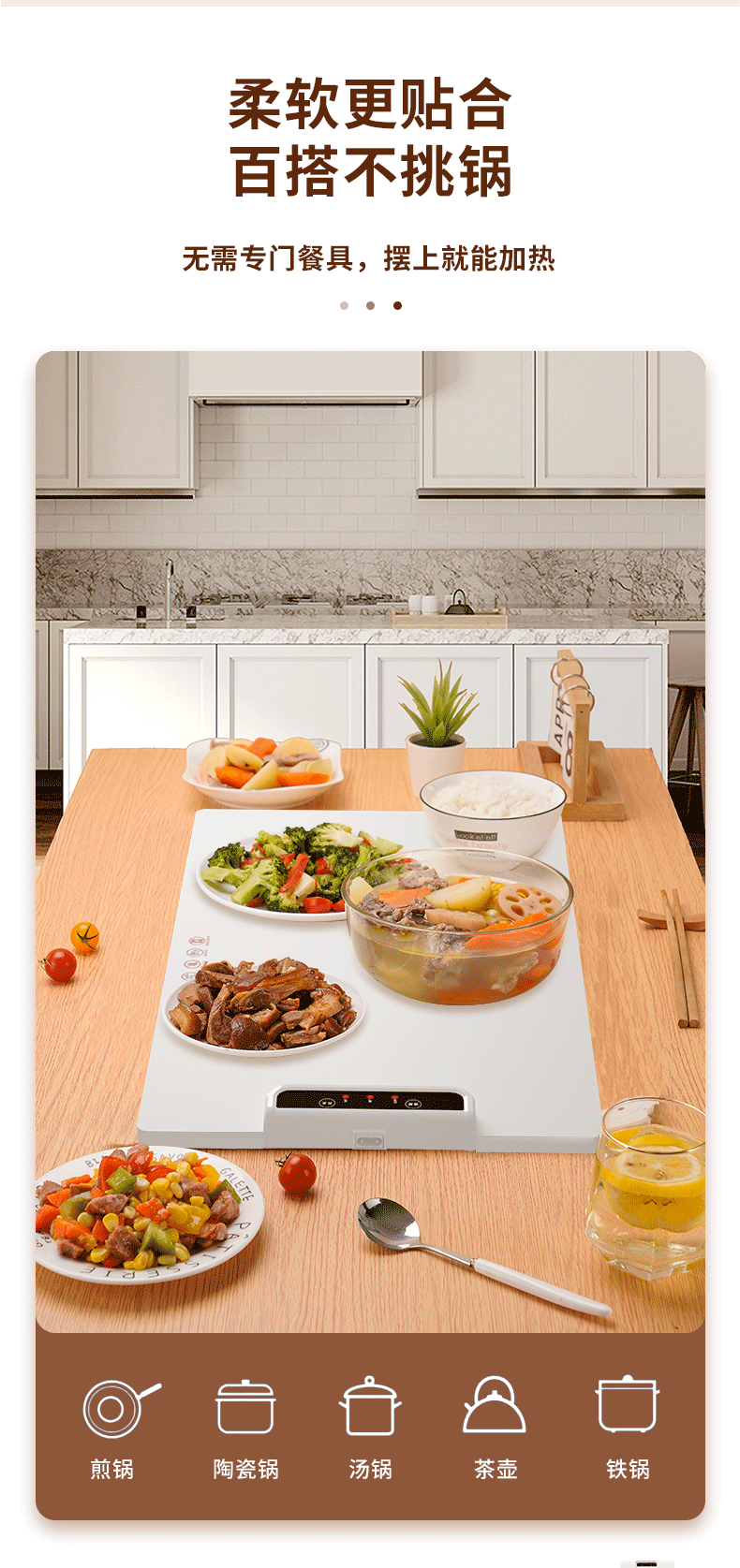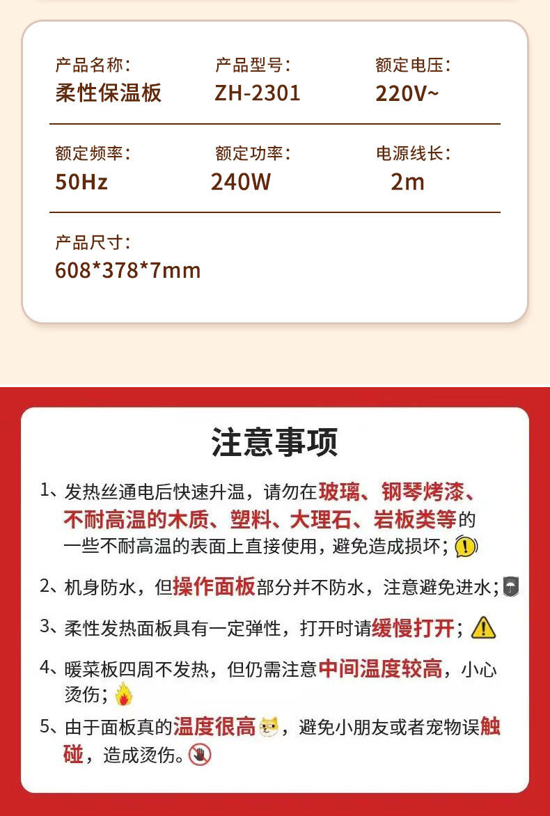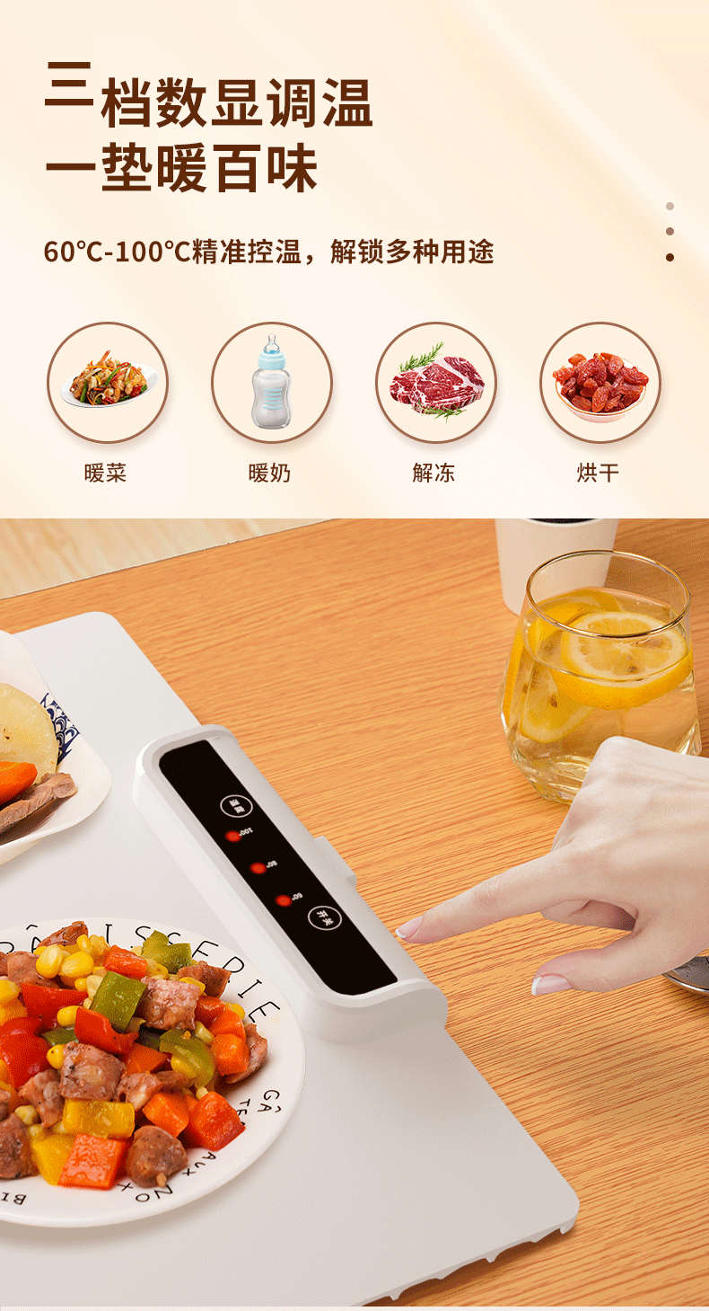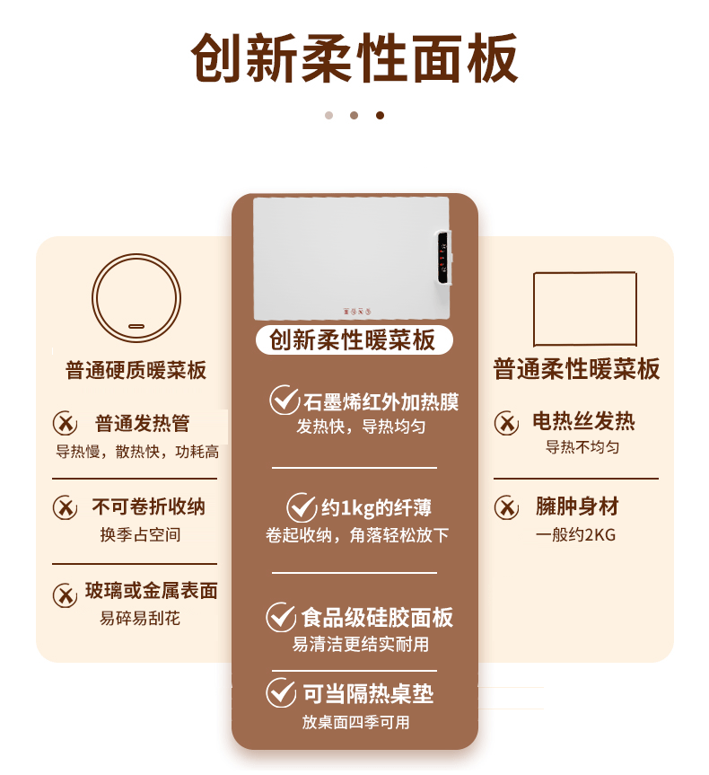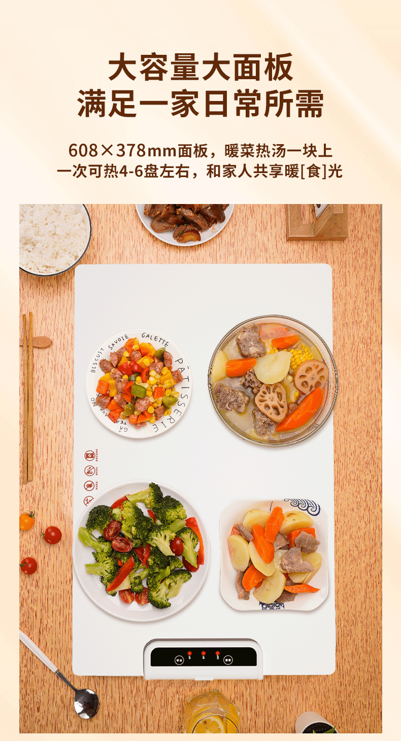家用餐桌方形饭菜暖菜板加热保温板热菜板热饭恒温板可折叠收纳