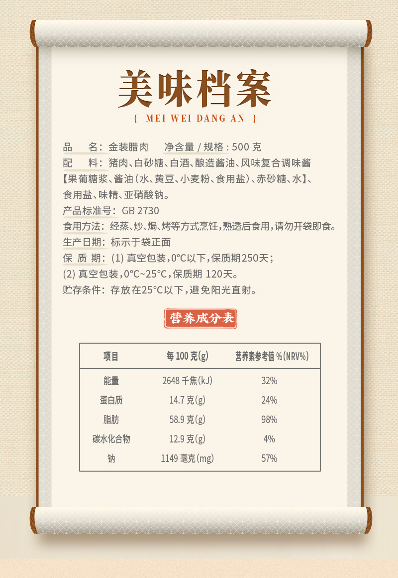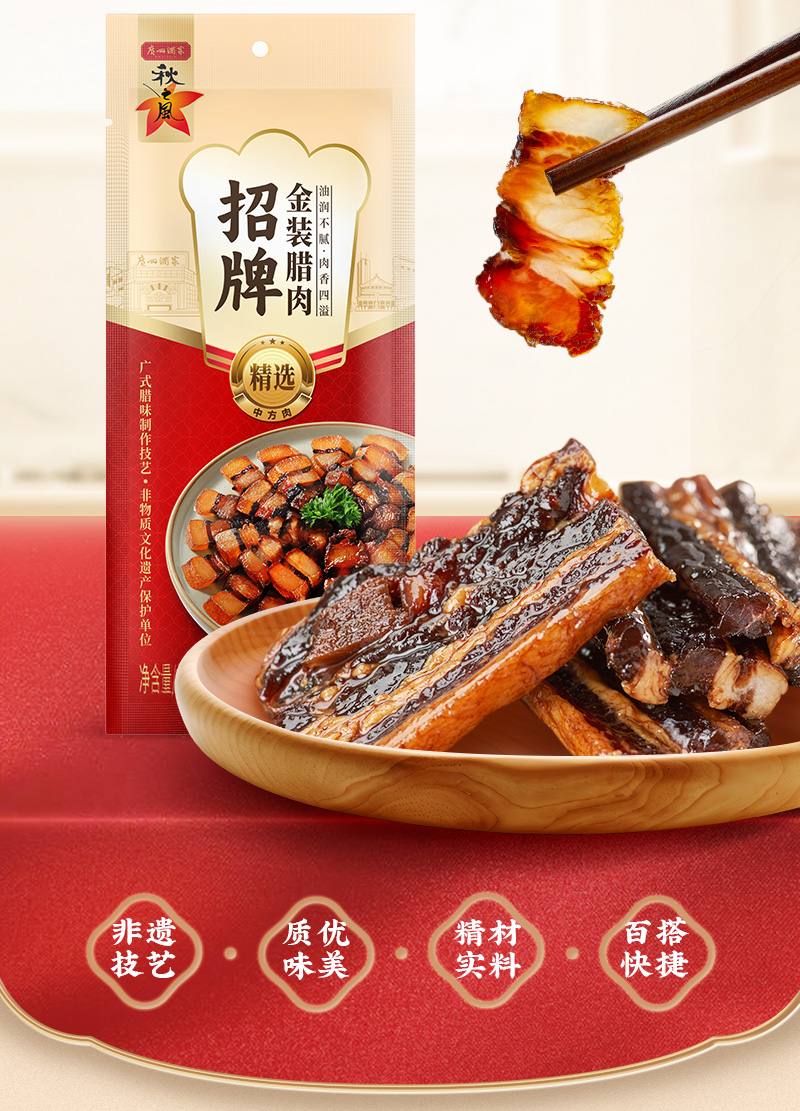广州酒家 金装腊肉袋装广式腊味秋之风节日送礼广东手信伴手礼