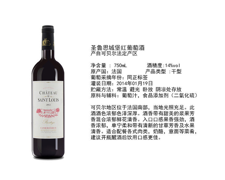 【整箱购买】圣鲁思城堡红葡萄酒 Chateau Saint-Louis Prestige Corbieres 750ml*6