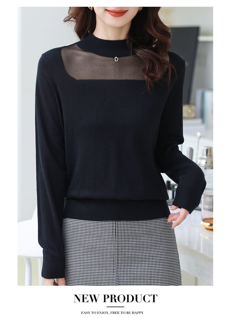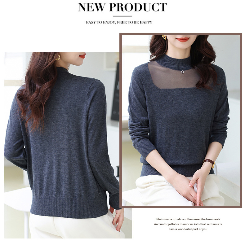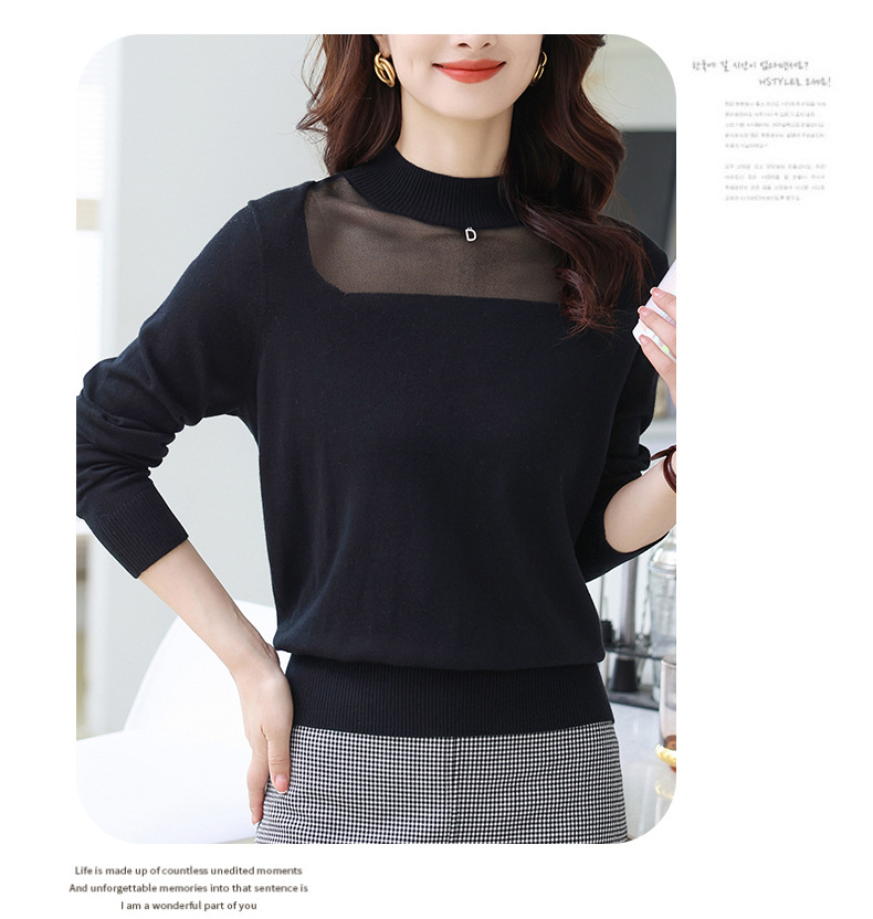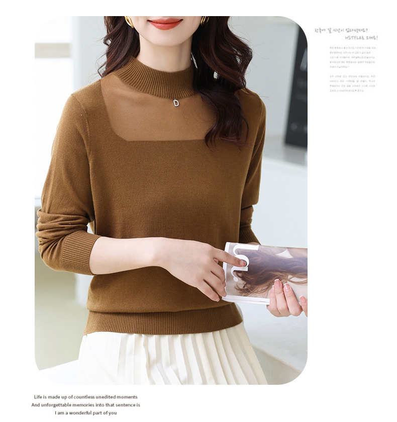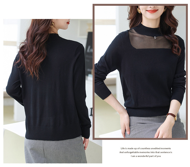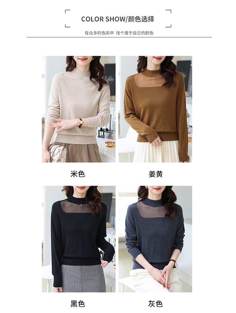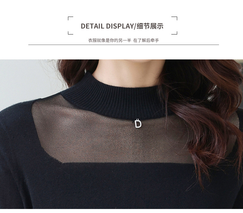 洋气半高领针织衫,今年流行漂亮上衣秋冬网纱打底衫CC-XQ-855