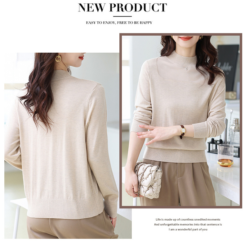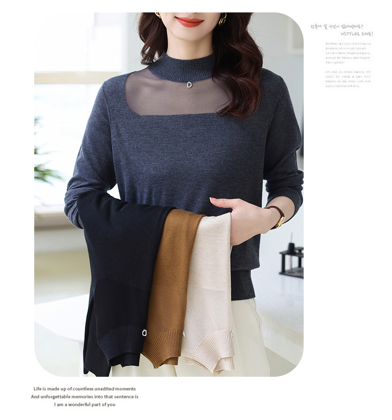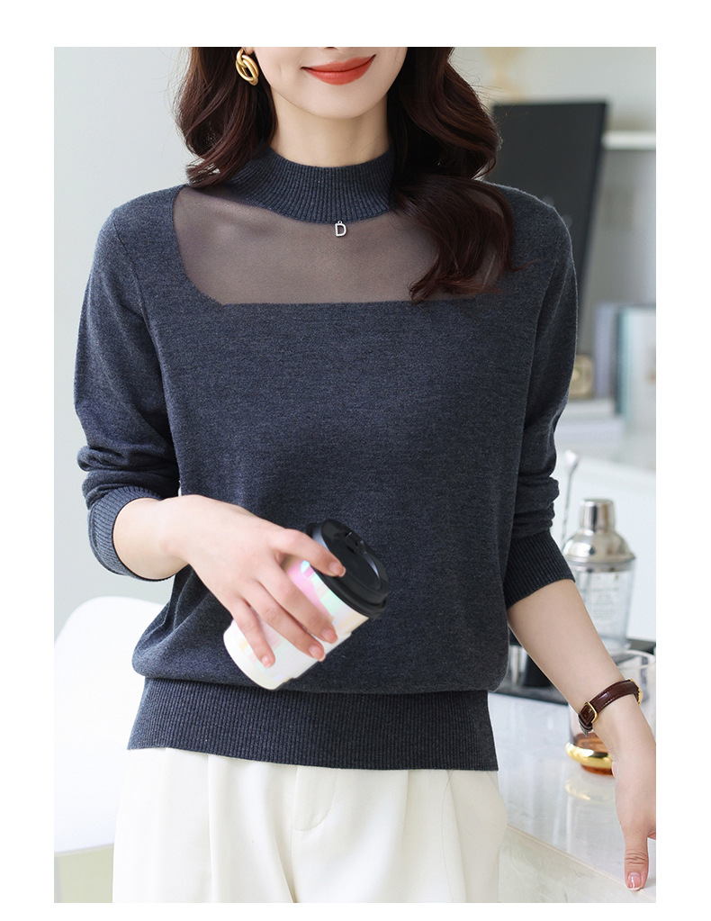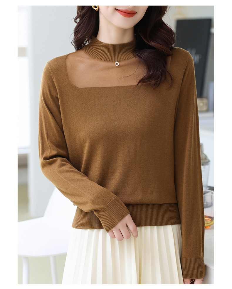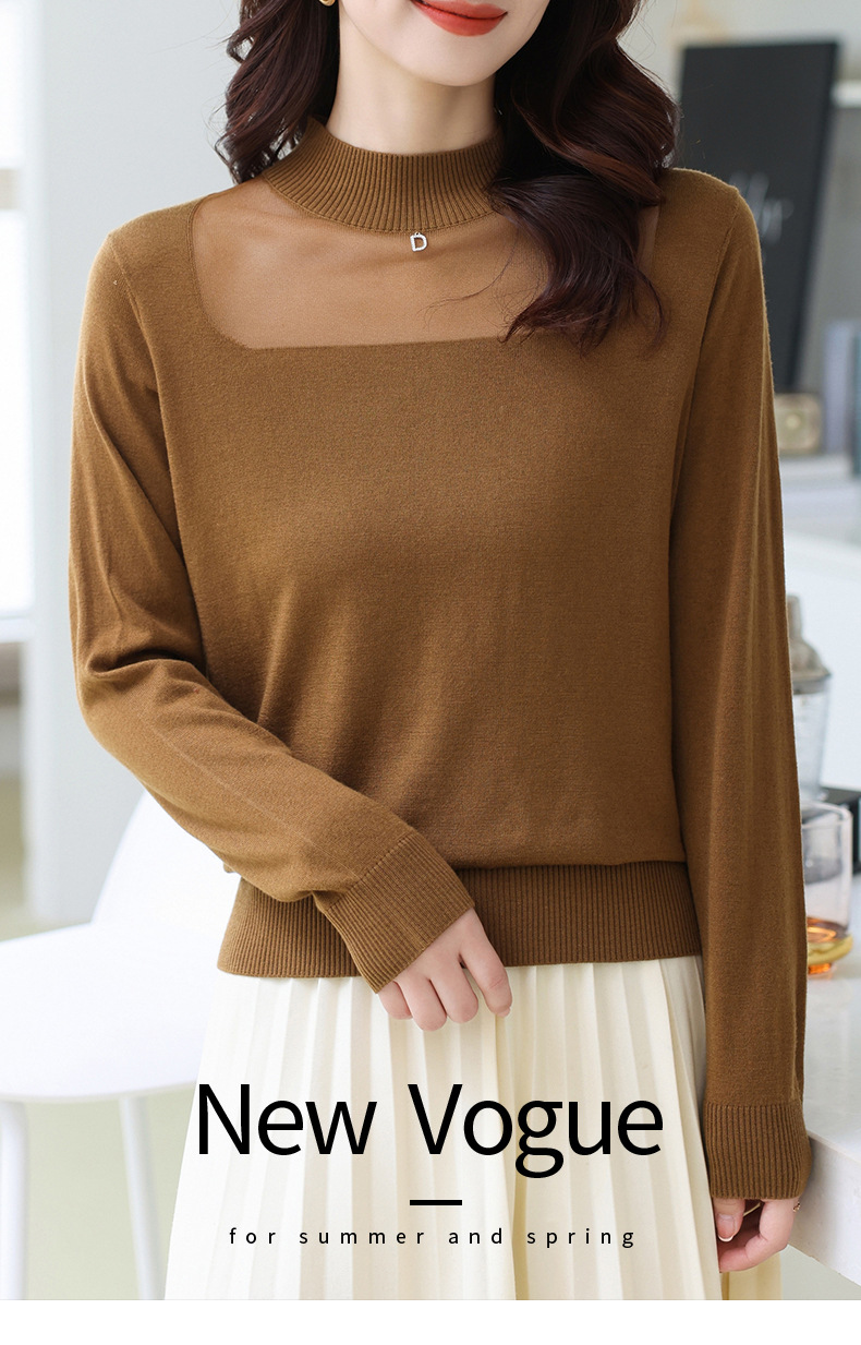 洋气半高领针织衫,今年流行漂亮上衣秋冬网纱打底衫CC-XQ-855