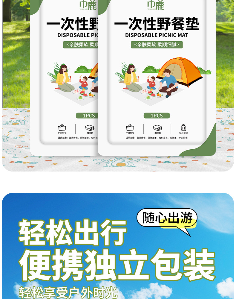 「9.9到手!一次性野餐垫」便携式户外露营防潮垫 单双人防油沙滩垫草坪地垫防水户外装备