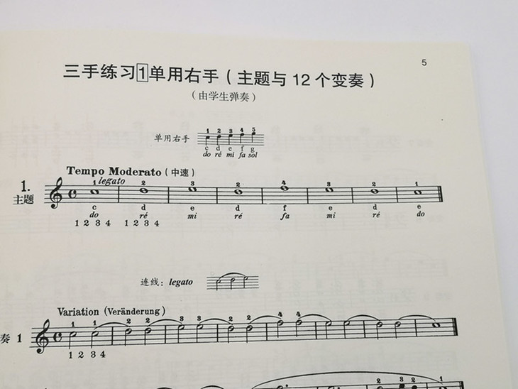 《拜厄钢琴基础教程(教学版)》,本书教学特色之一:注视者将本教程作了教学次序上的指导,划分了三个部分的教学重点、明确了进度安排。无论对学习者以及教学工作都具有极大的帮助。特色之二:作品中缺失和错误的指法,以及装饰音、乐句处理等,注释者都作了合理的修正,穿插在乐谱中一目了然。使之更加准确、方便、实用。特色之三:针对每一首练习,注释者作了教学要点的提示和说明,尤其对于启蒙教学中出现的29个“第一次”作了“节点”性的概括,使之真正起到了“教学版”的作用。