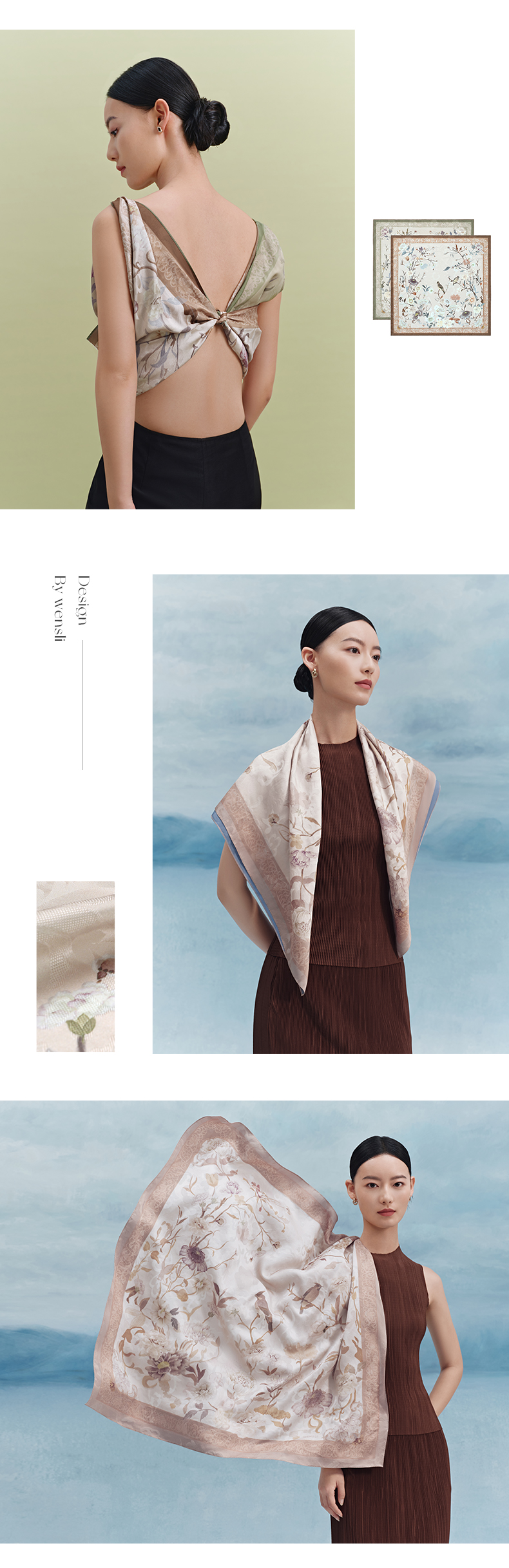 万事利双面印花大方巾-鸟语花境