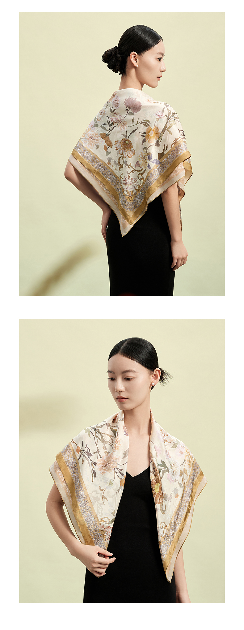 万事利“玉兰赋”63厘米双面印花真丝中方巾
