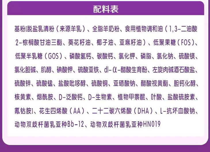 4.本品为双益生菌配方;bb-12益生菌,添加hn019益生菌;