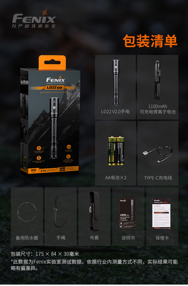 Fenix菲尼克斯 LD22 V2.0手电筒强光超亮户外便携充电+AA电池手电