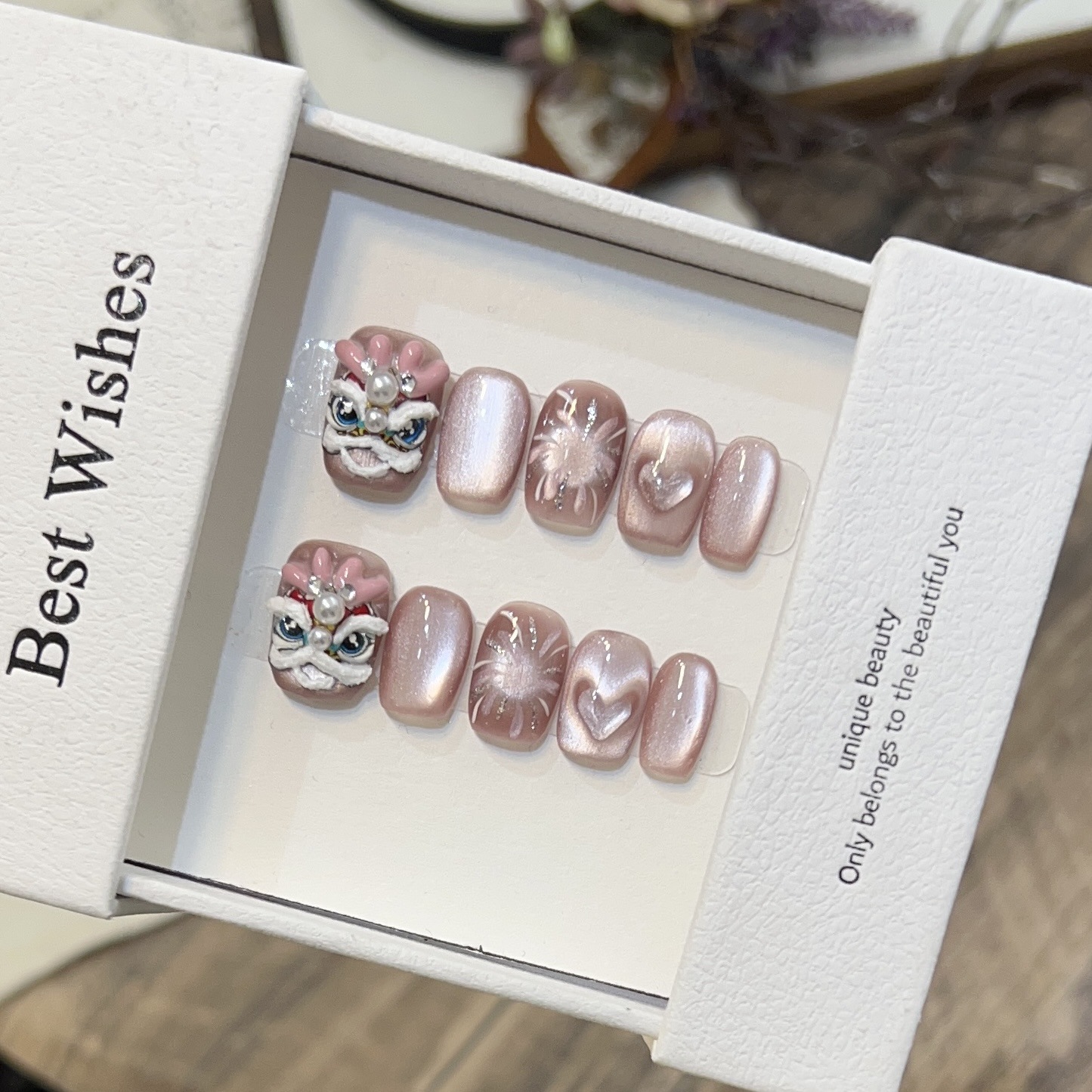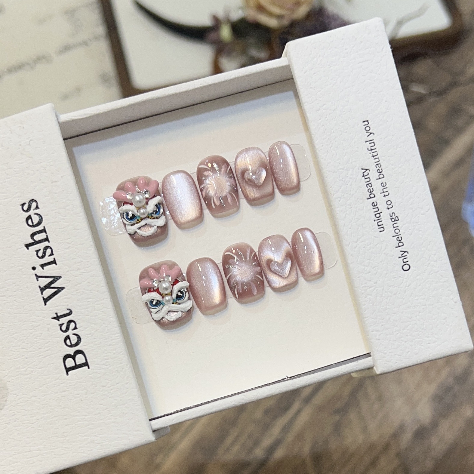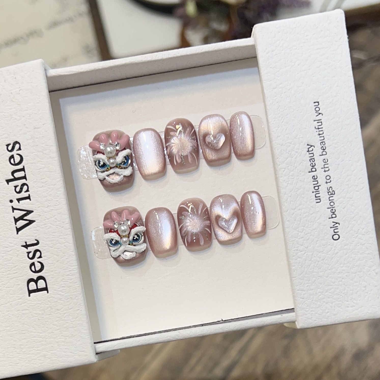 【吉祥寓意❗️福运加身】纯手工短款穿戴甲高级感猫眼美甲可爱龙角醒狮烟花猫眼可拆卸甲片。jc