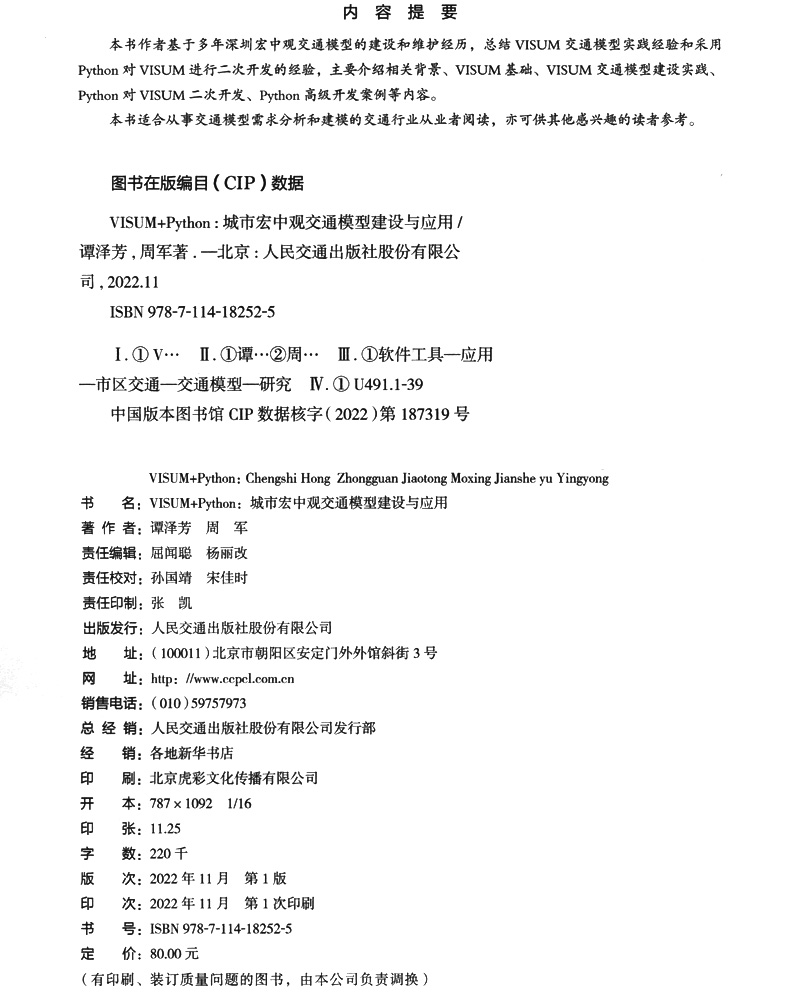 书名:VISUM+Python:城市宏中观交通模型建设与应用