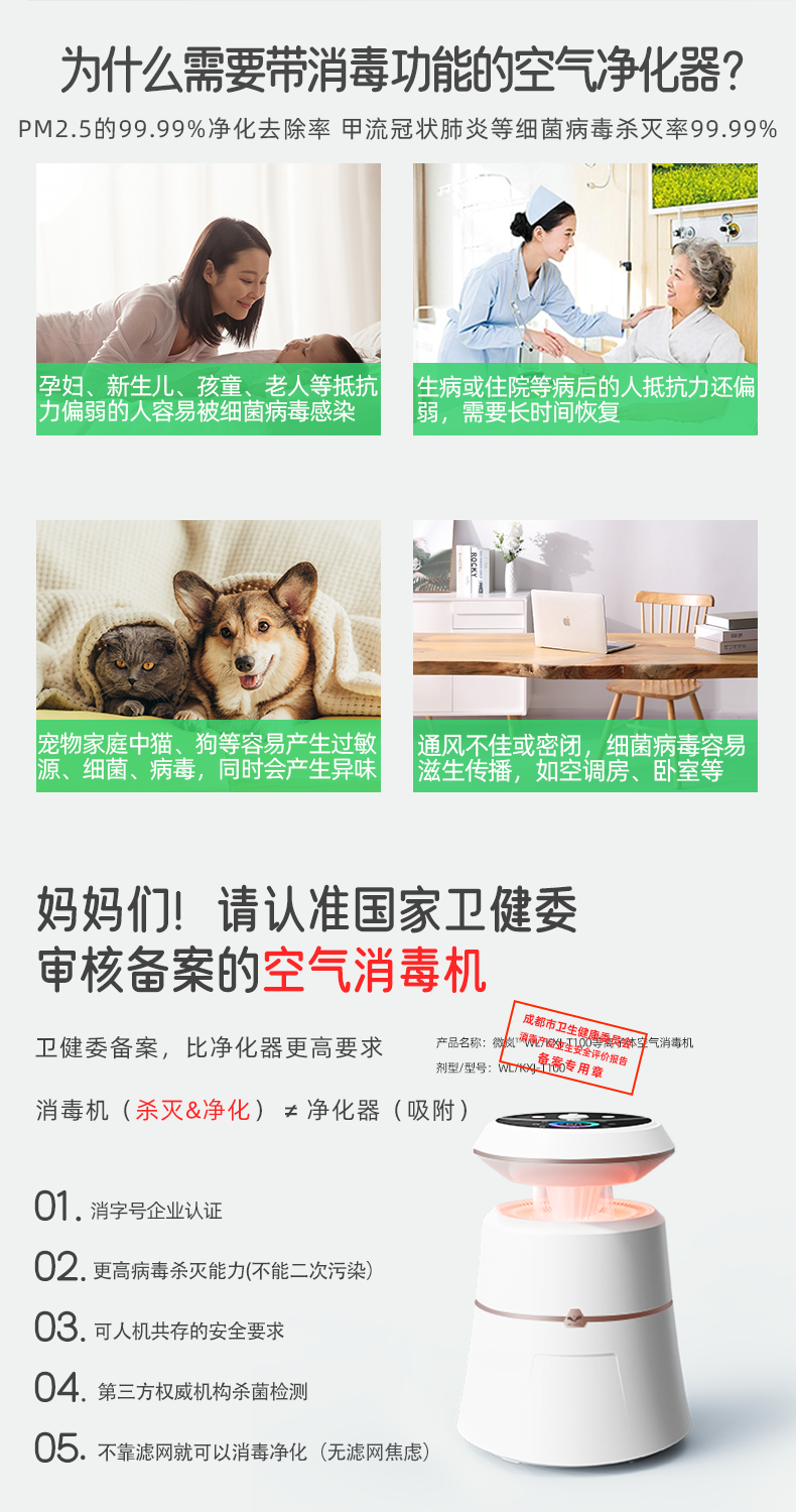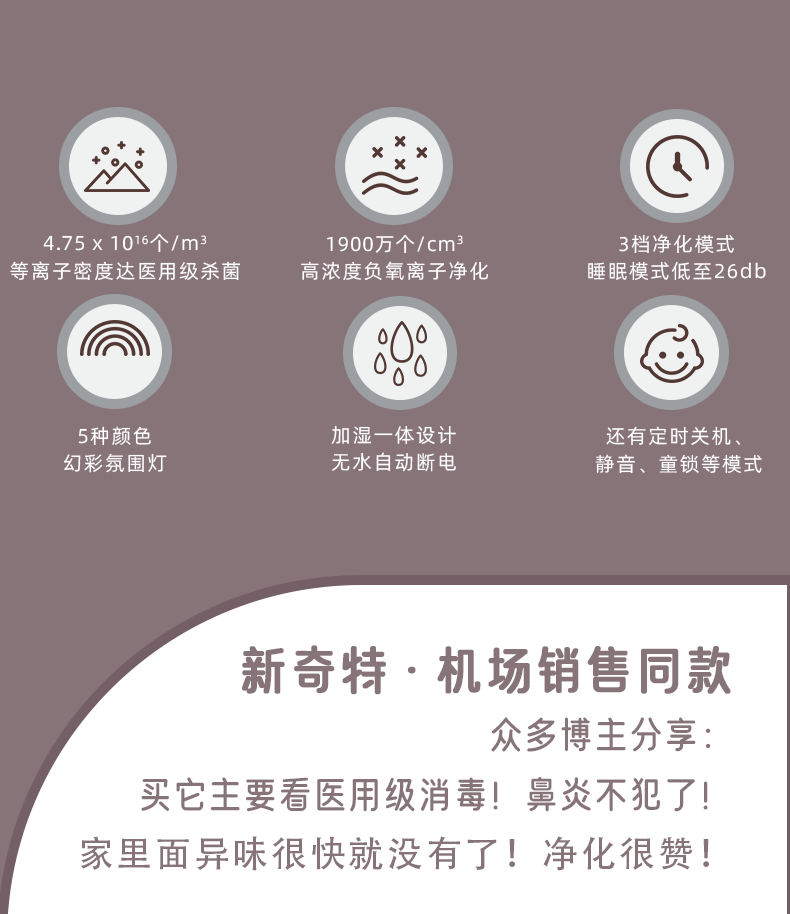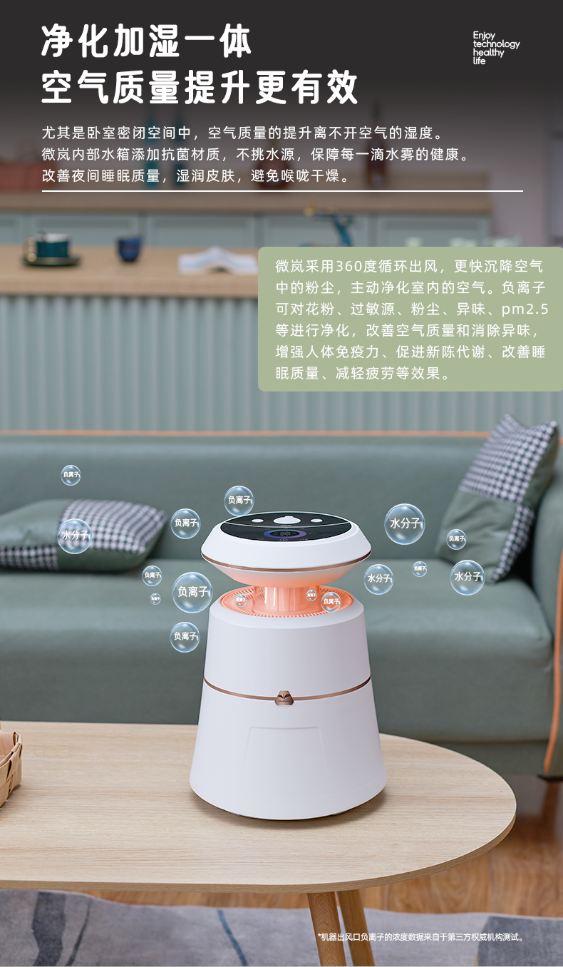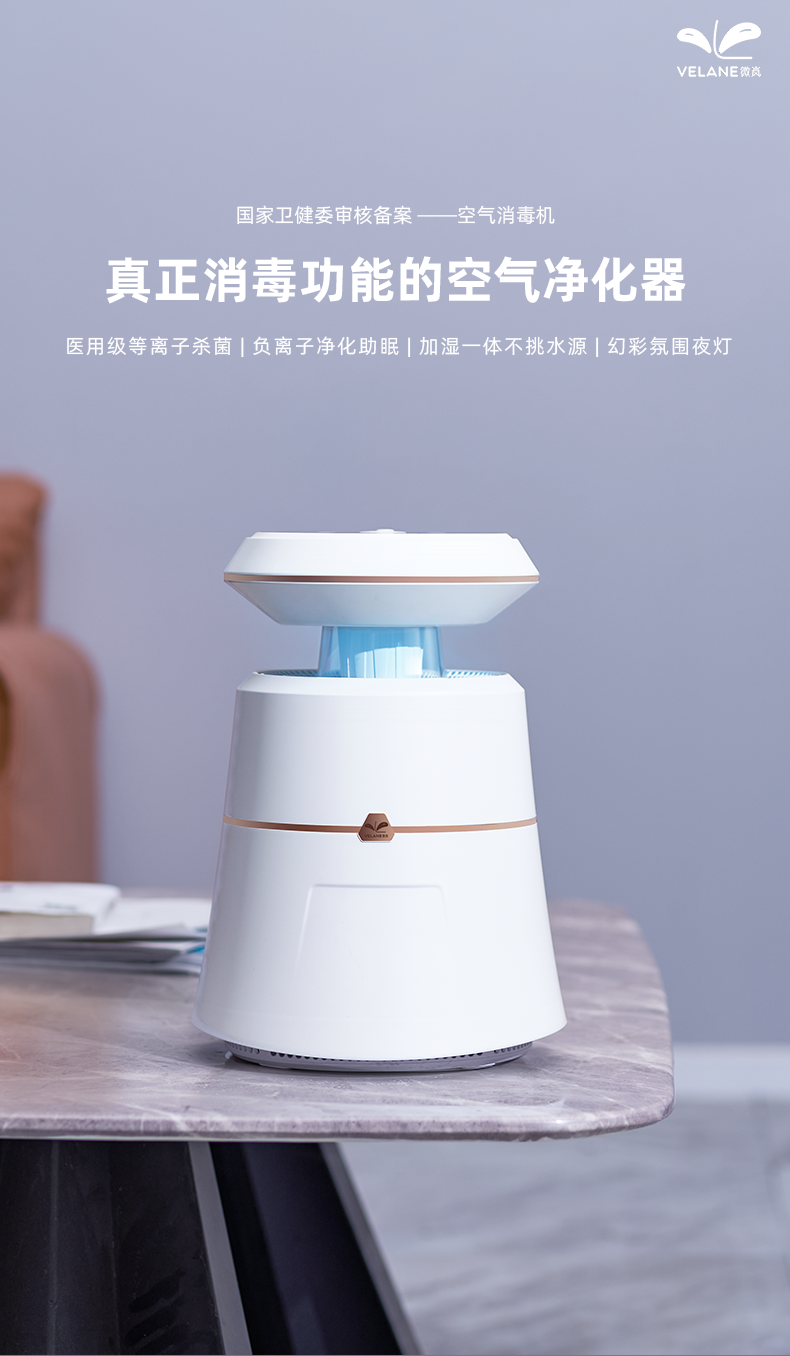 【VELANE微岚】空气消毒净化器 负离子净化 加湿氛围灯一体