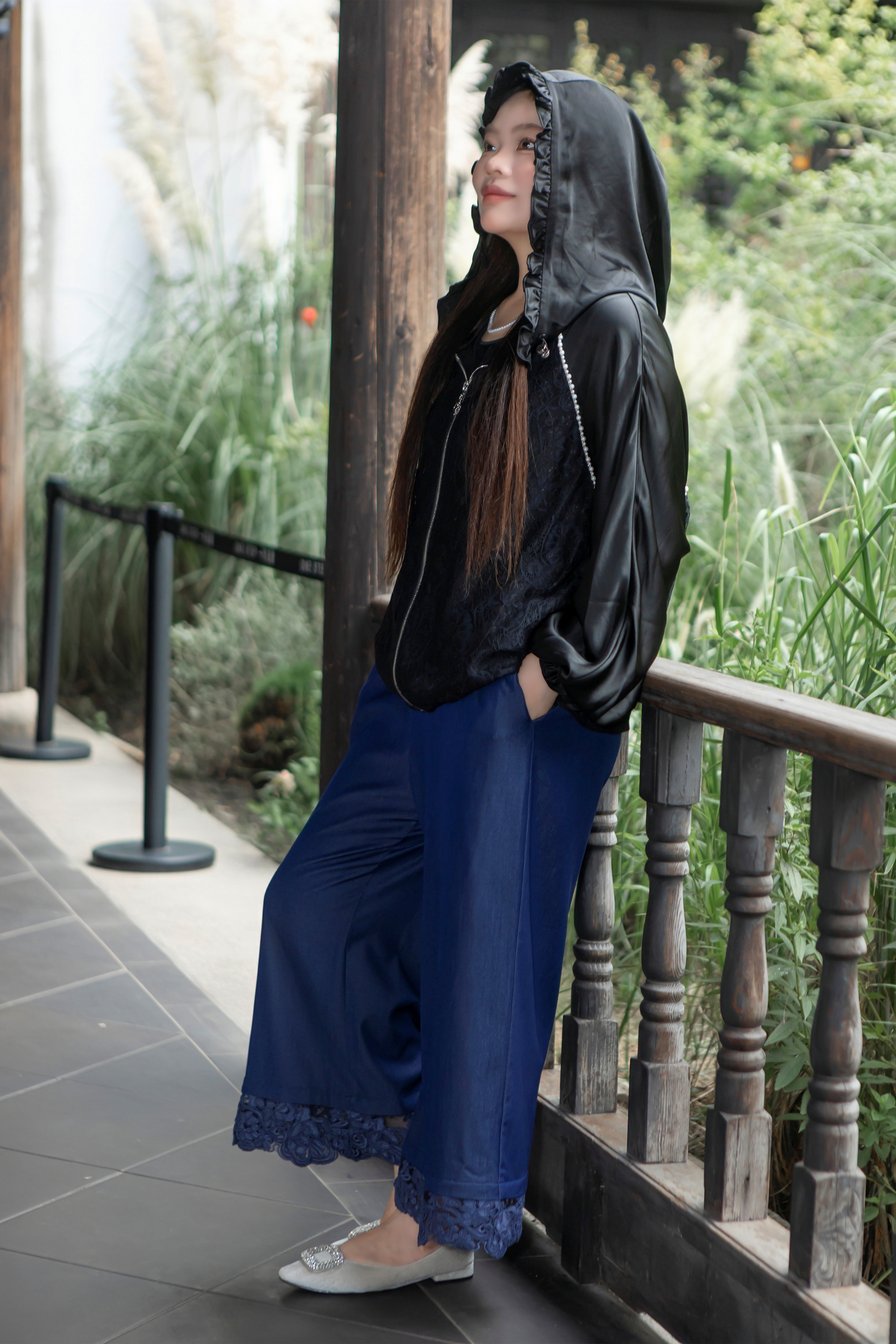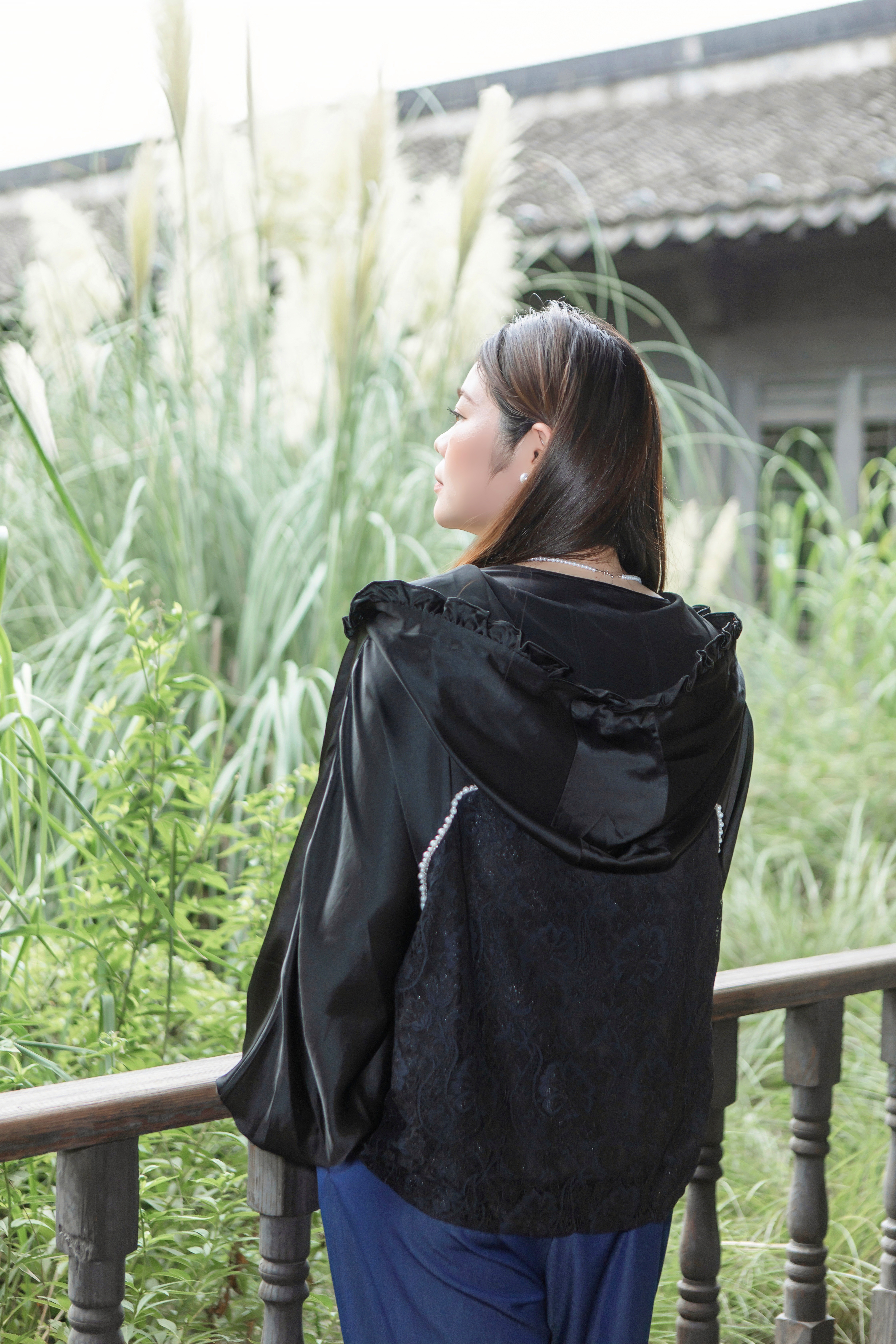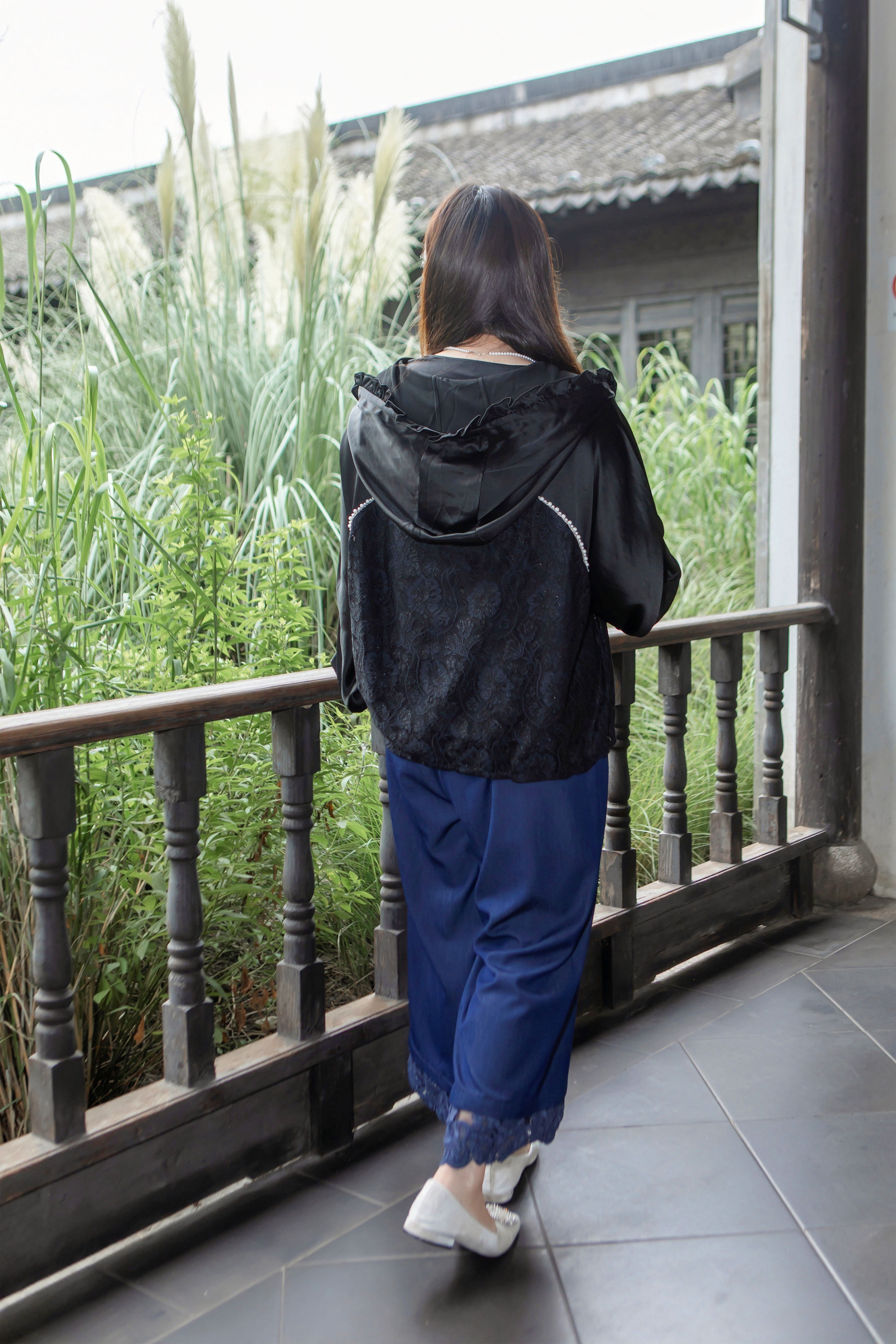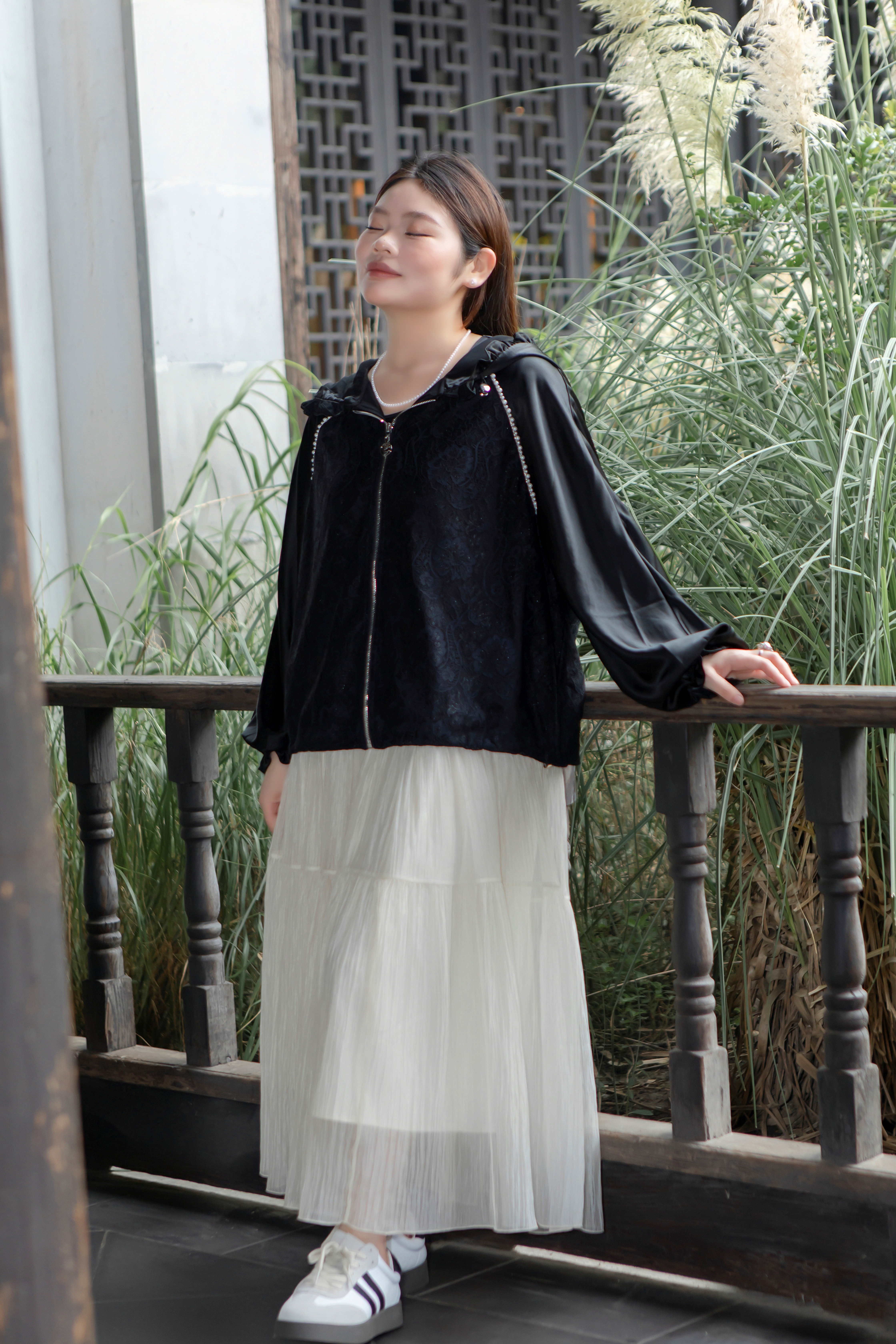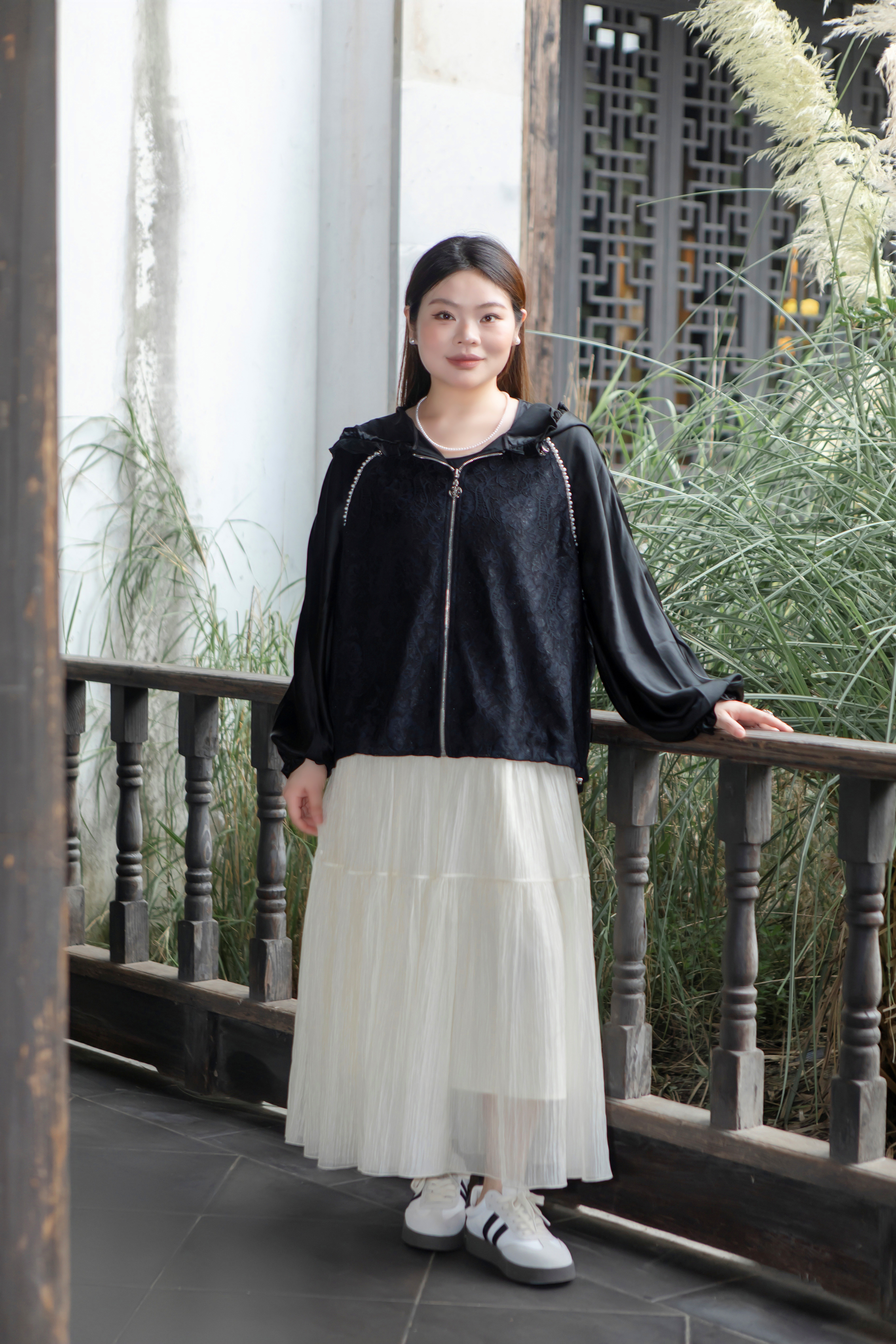 15天内发货【重工 蕾丝珍珠拼接外套】衣身2层拼接,蕾丝部分不透,缎面醋酸拼接蕾丝,重磅出品,一位工人一整天只能出一件,松紧花苞袖口,下摆松紧抽绳,拼缝、熨烫都做的极为讲究