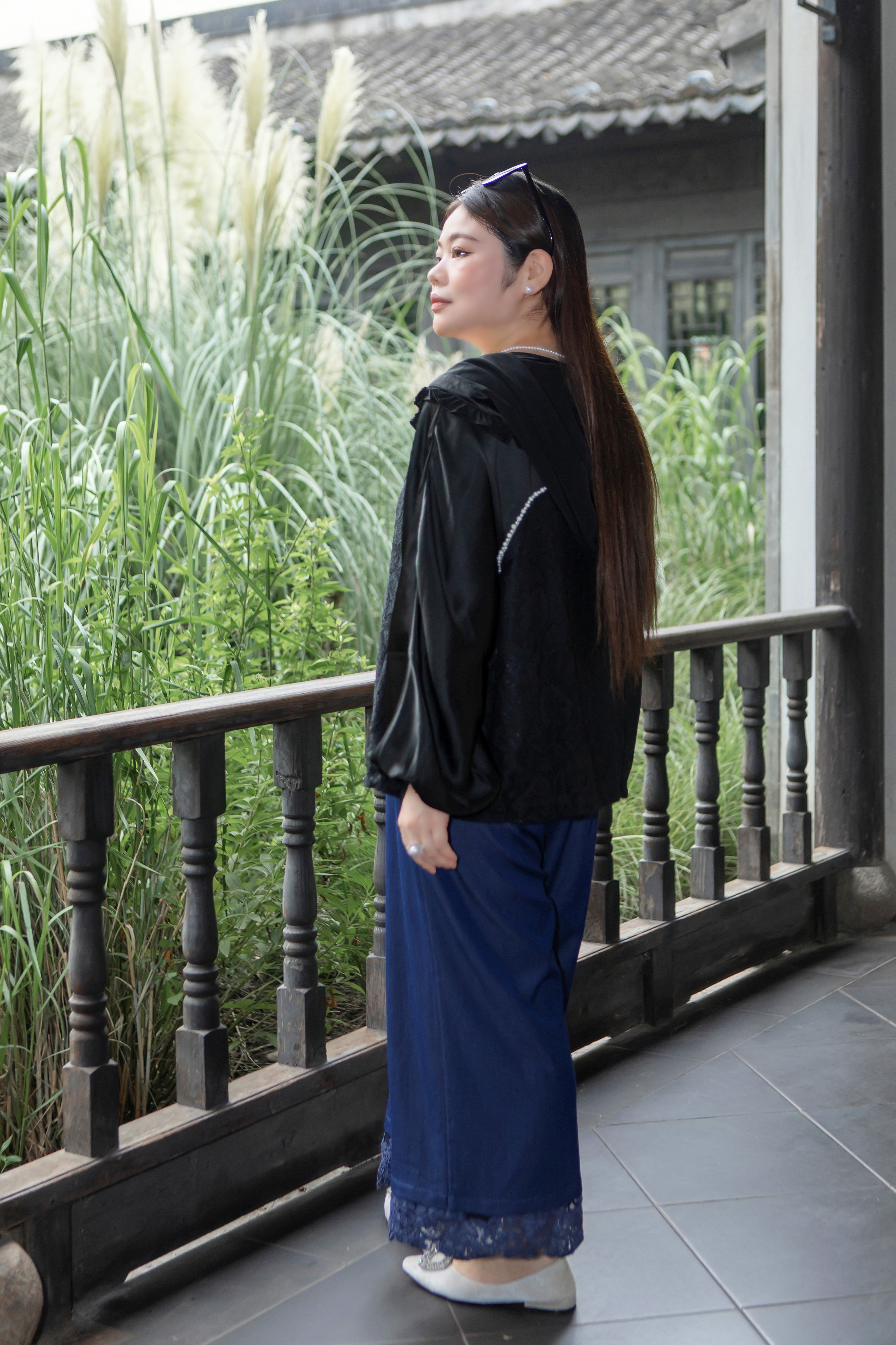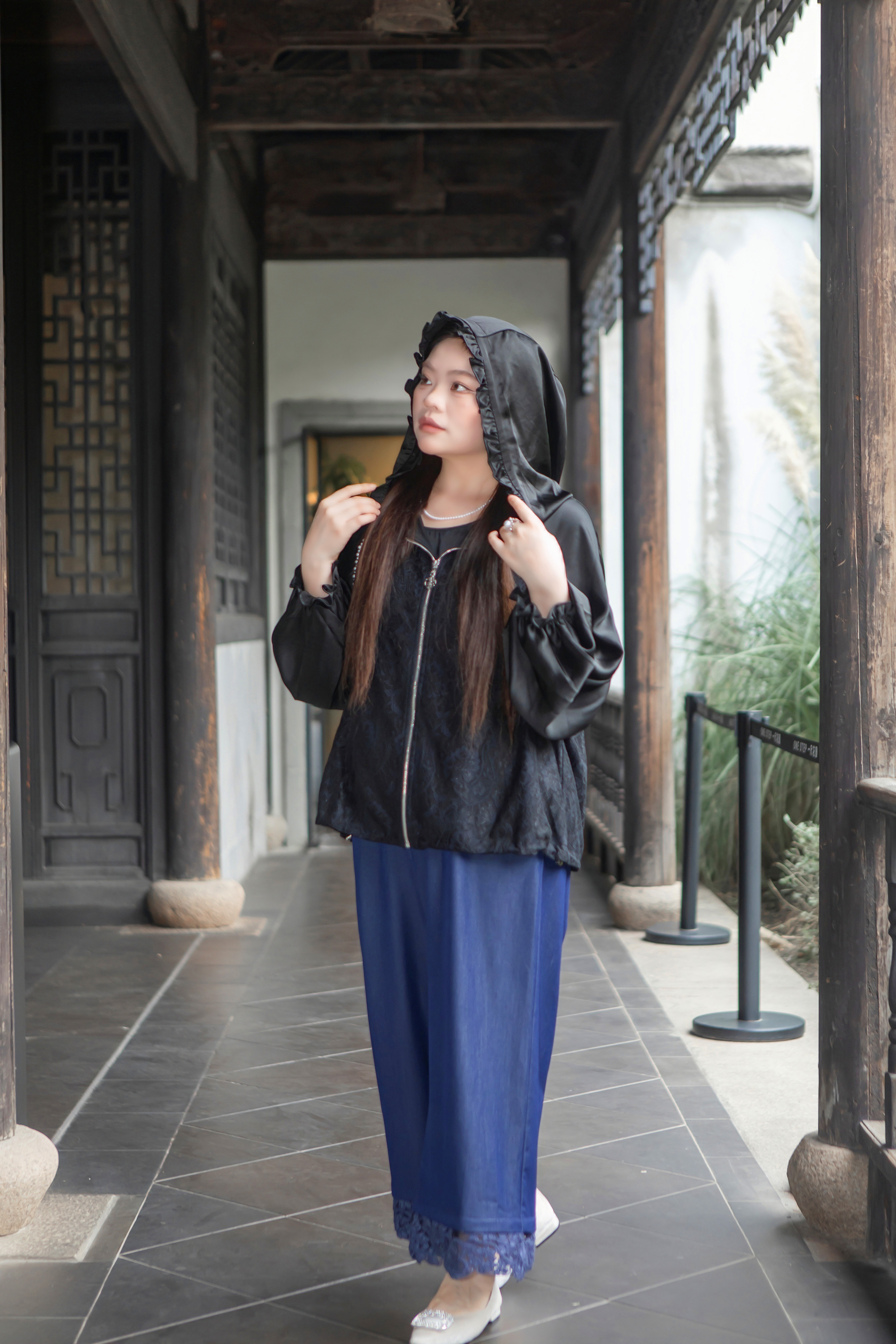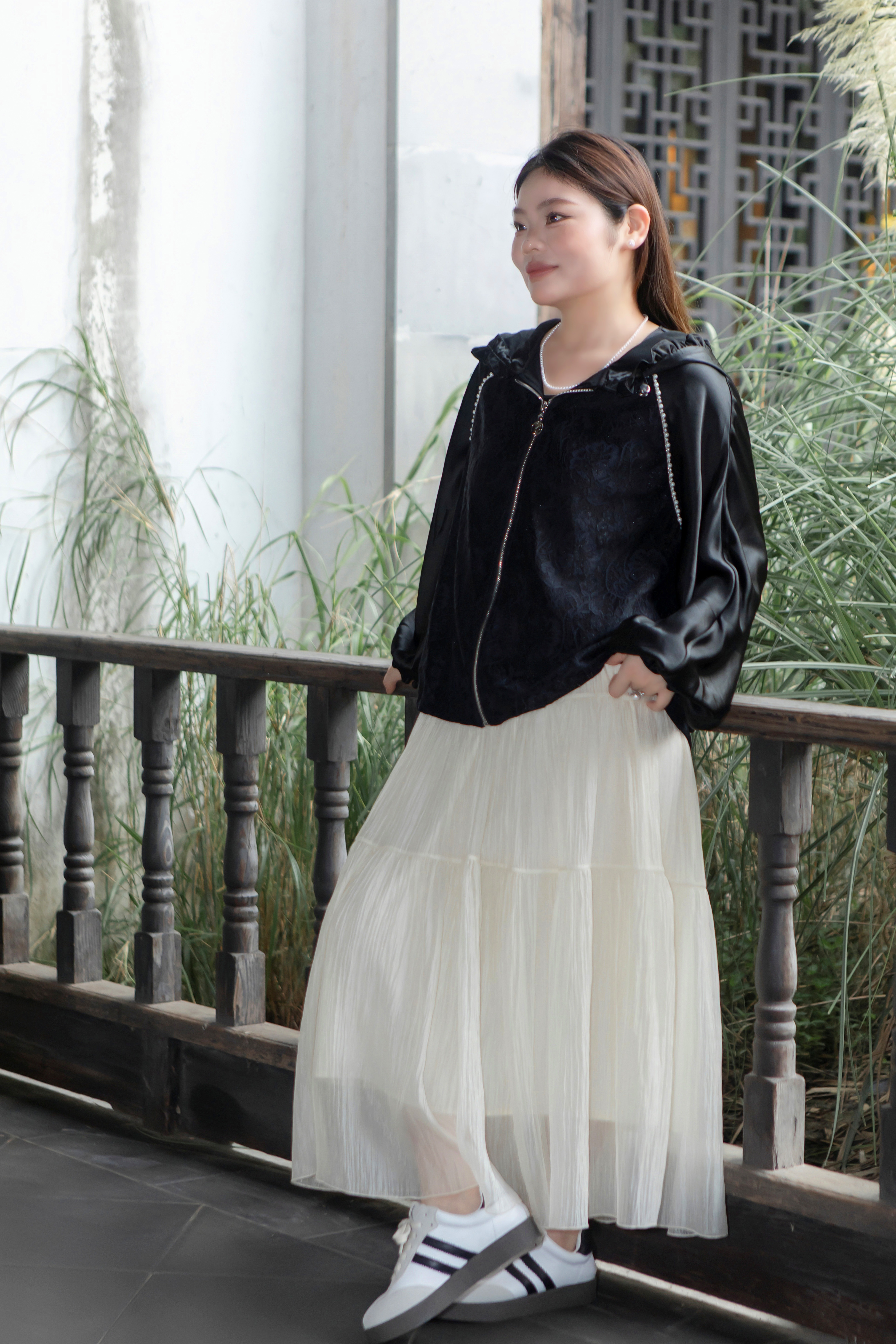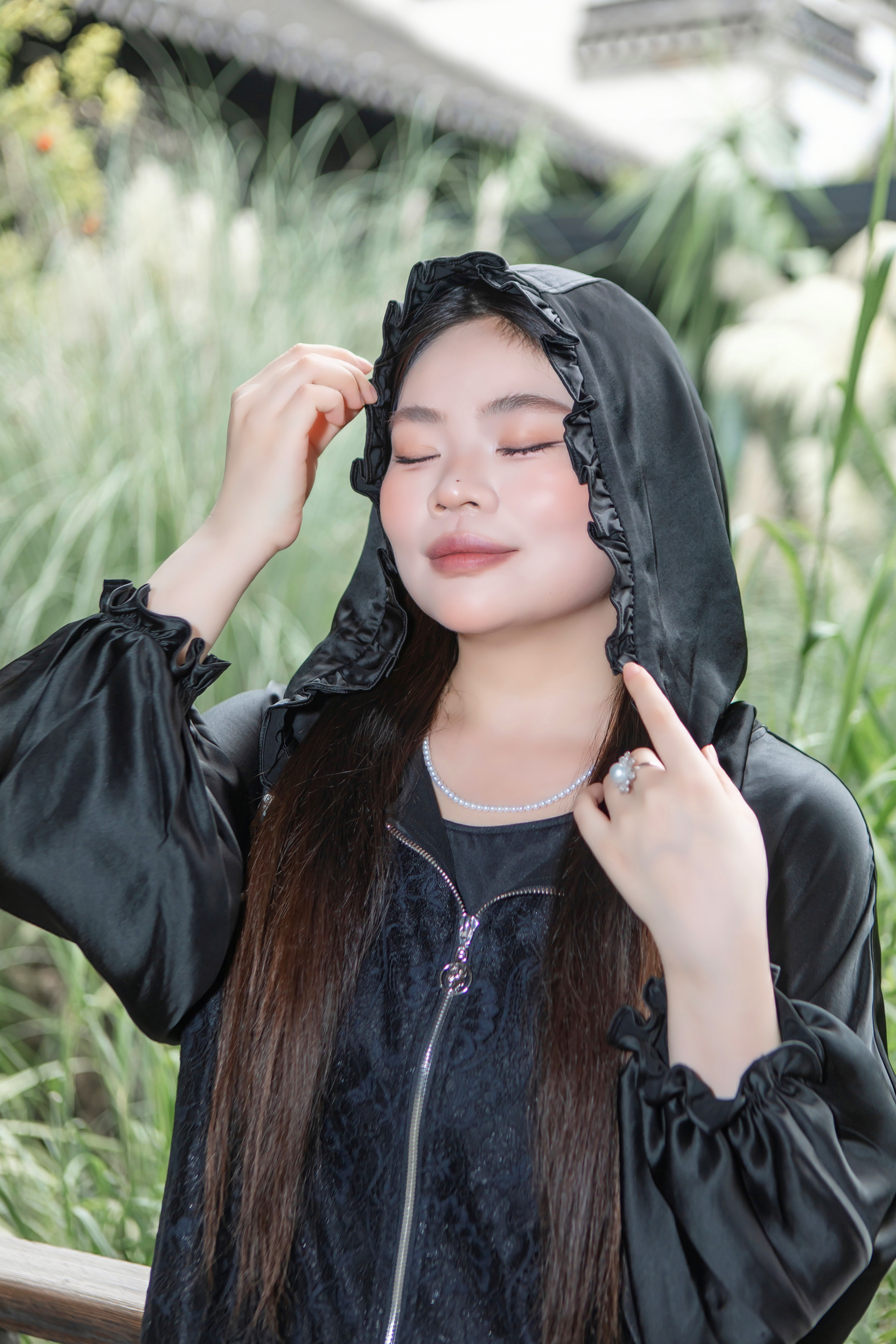 15天内发货【重工 蕾丝珍珠拼接外套】衣身2层拼接,蕾丝部分不透,缎面醋酸拼接蕾丝,重磅出品,一位工人一整天只能出一件,松紧花苞袖口,下摆松紧抽绳,拼缝、熨烫都做的极为讲究