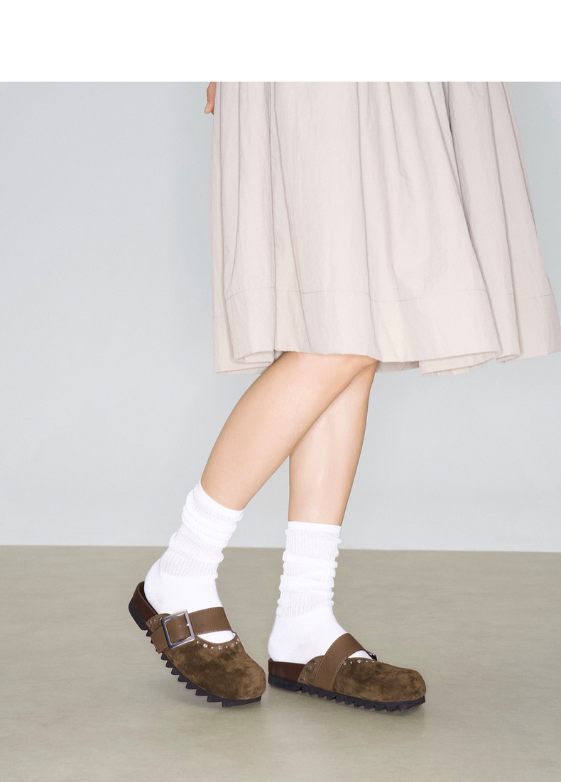 lost in echo2025早秋新款一字带时尚真皮牛皮包头勃肯拖鞋一脚蹬