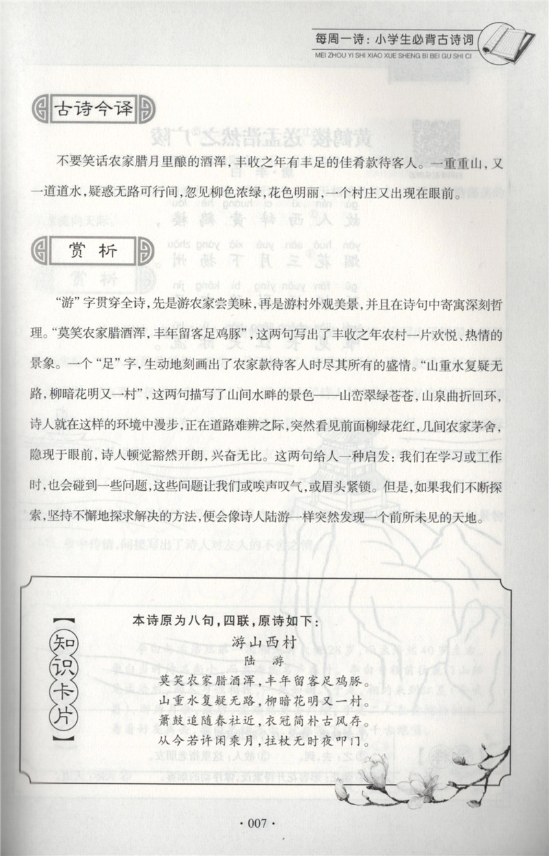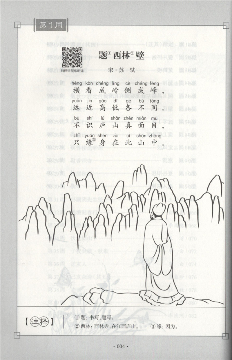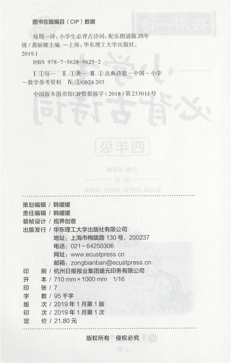 每周一诗 小学生必背古诗词 语文四年级/4年级 注音配乐朗诵 部编版扫码获取配套音频 华东理工大学出版社