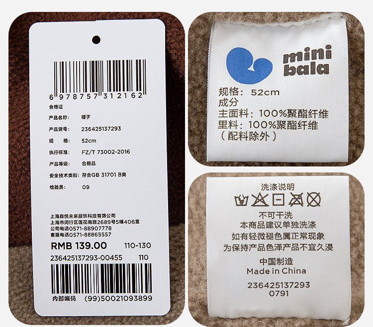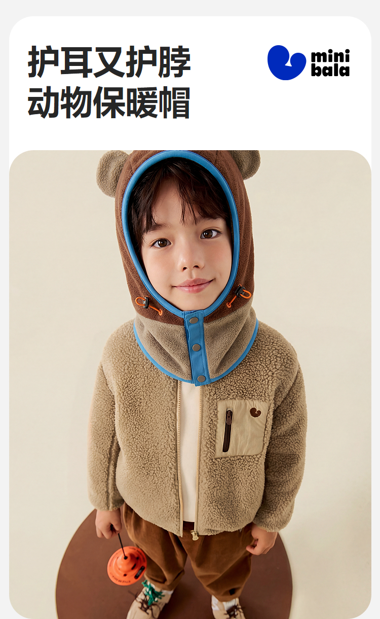 迷你巴拉儿童帽子男女童宝宝动物造型保暖护耳护脖一体包头帽秋冬