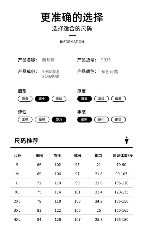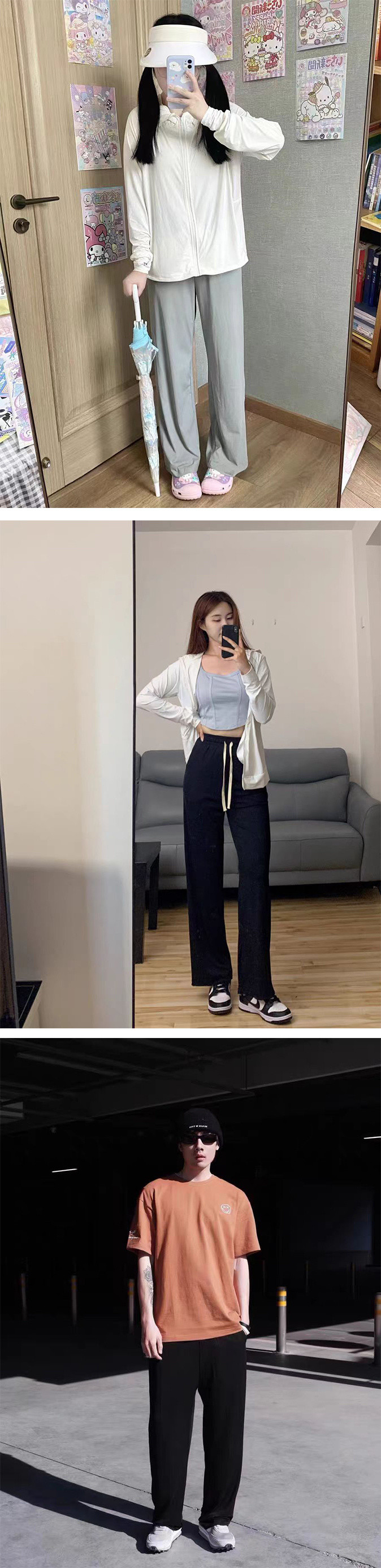 拖地裤长,遮住脚踝,防晒又防蚊, 让你在户外活动时更加自在。 个性直筒设计,显瘦又显高,让你在人群中独具魅力。 夏日衣橱的必备单品,让你在炎炎夏日也能保持 优雅与舒适。