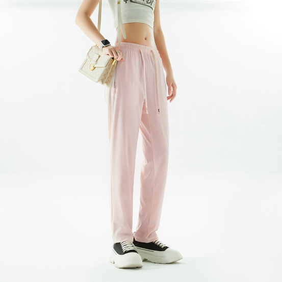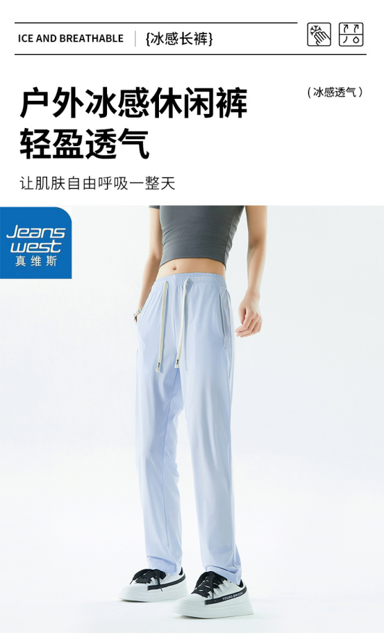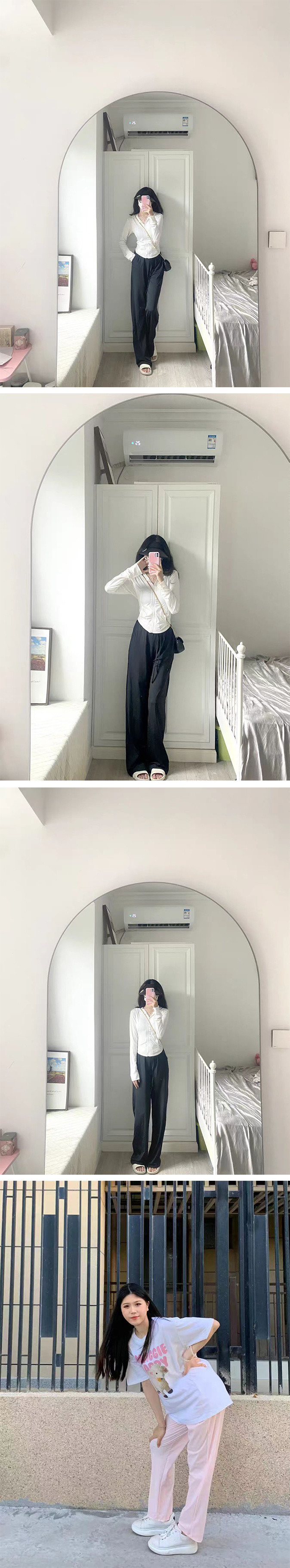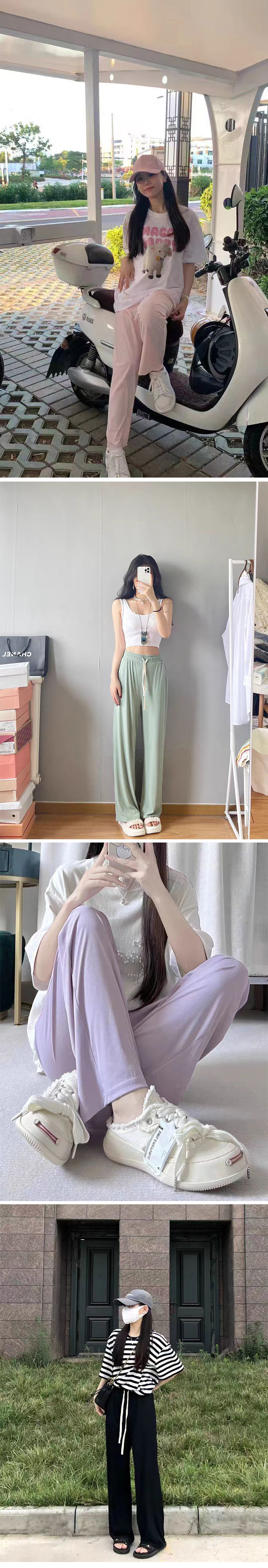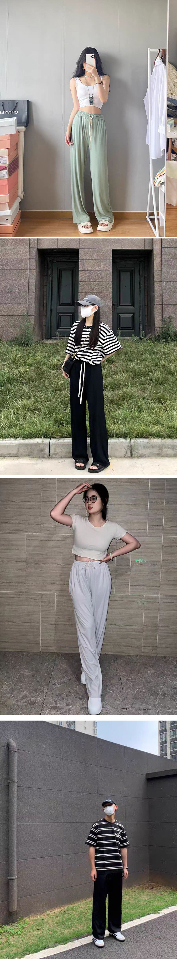 冰丝面料,轻薄透气,仿佛有一股清风在吹拂, 让你在炎炎夏日也能感受到清凉。 垂感十足的裤型,让你在行走间尽显优雅,仿佛 在跳动着轻快的舞步。