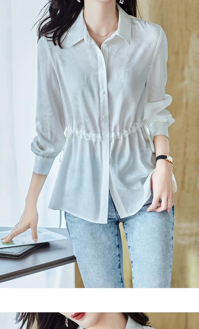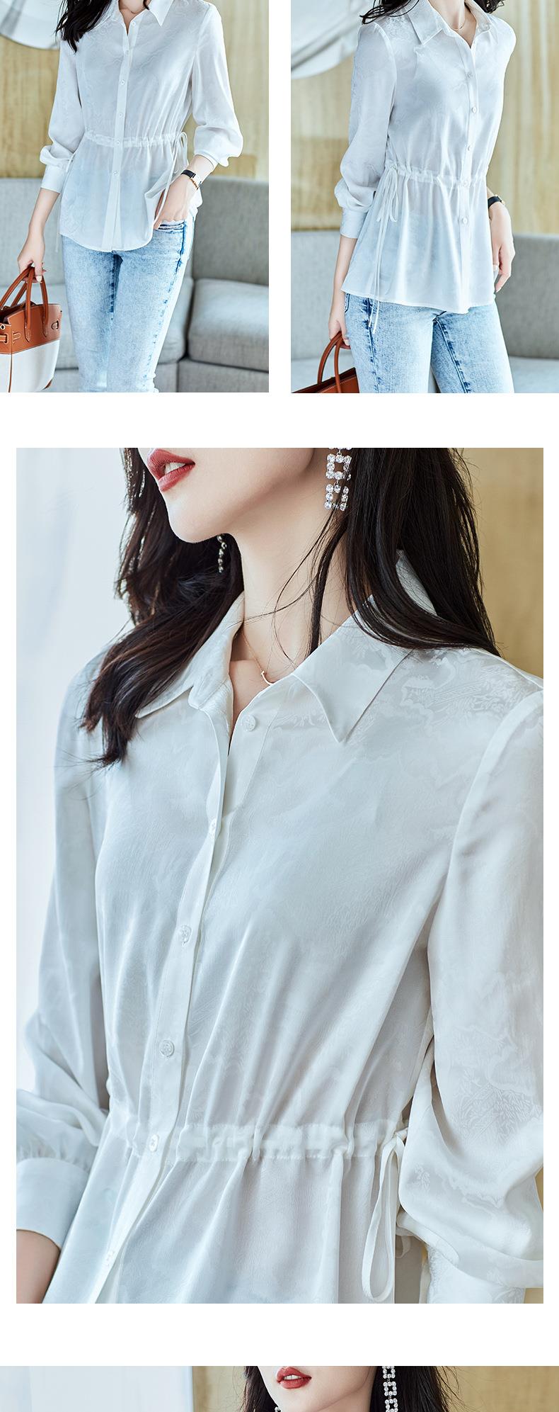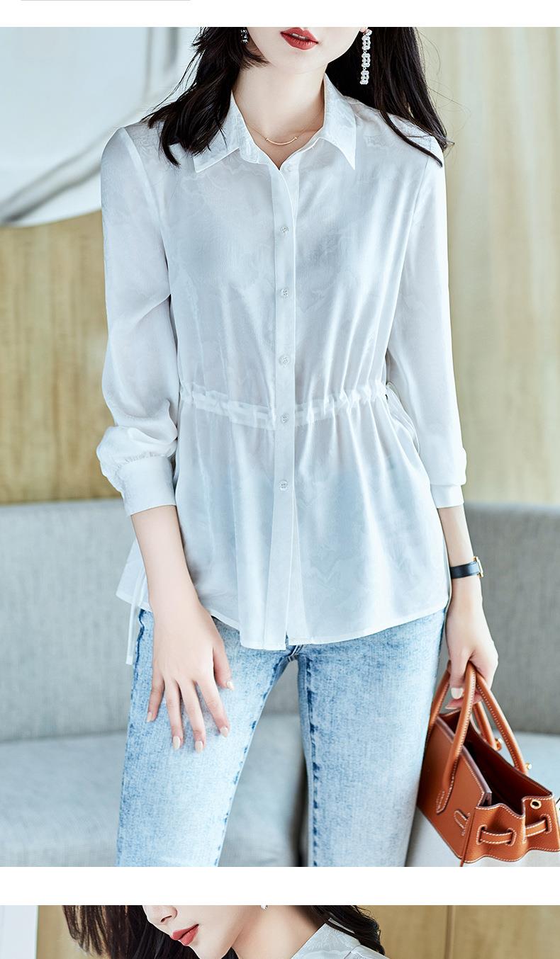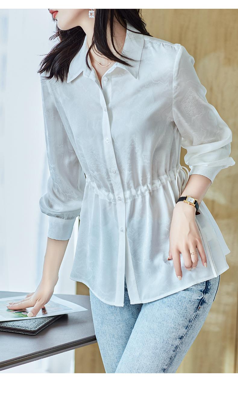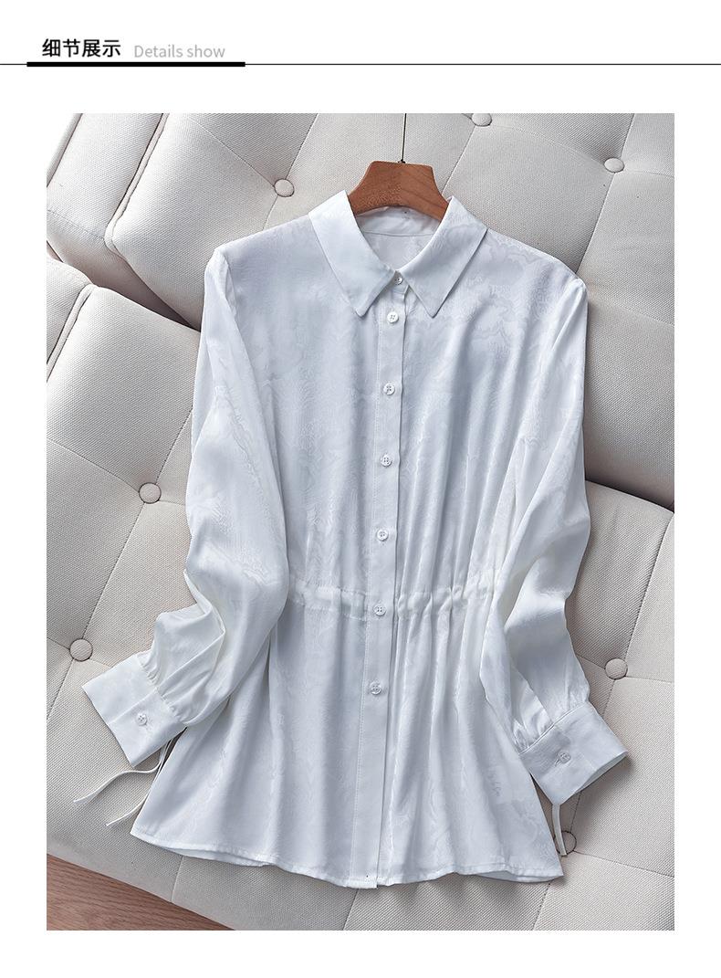 2023秋装新款衬衫女长袖宽松雪纺衫白色女士衬衣A2680