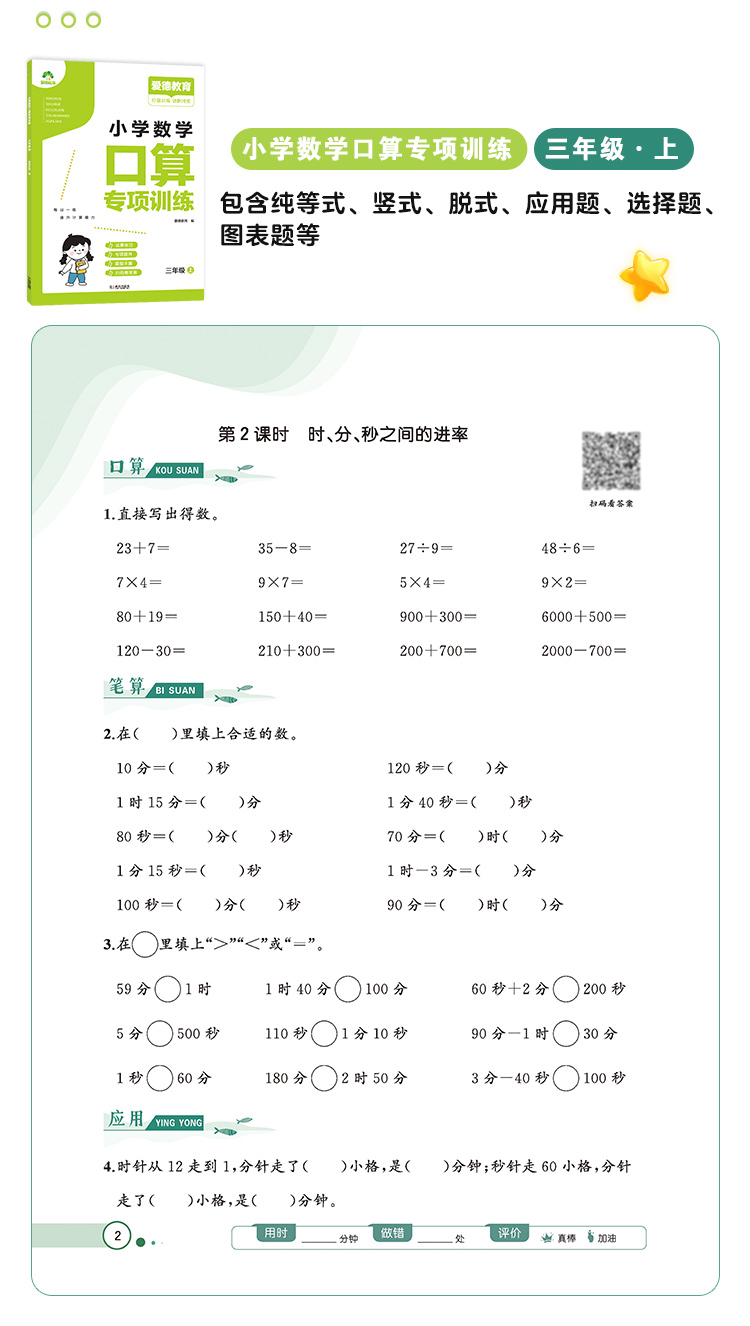 小学生数学口算专项训练一二三年级上下册人教版教材同步口算巧算速算天天练每天一练竖式脱式加减法计算笔算应用暑假作业练习题册