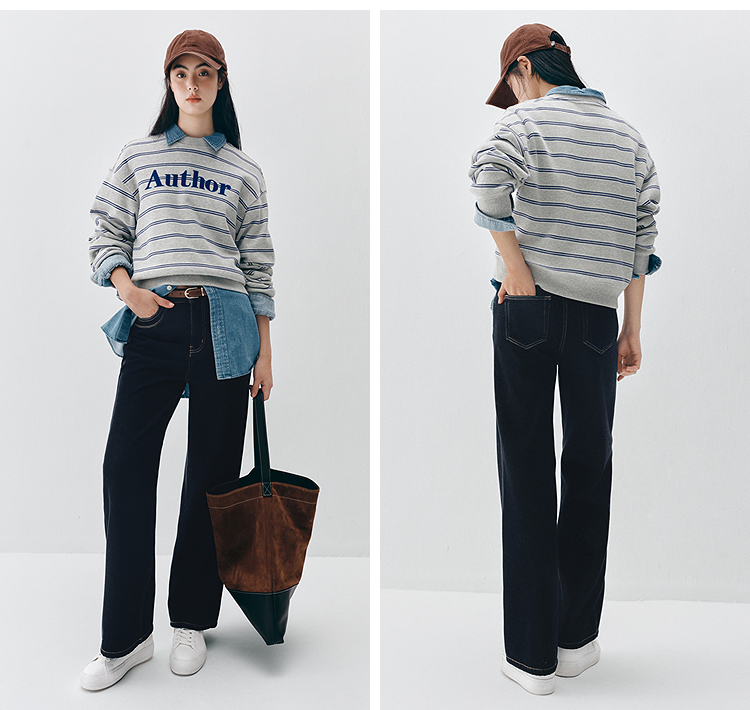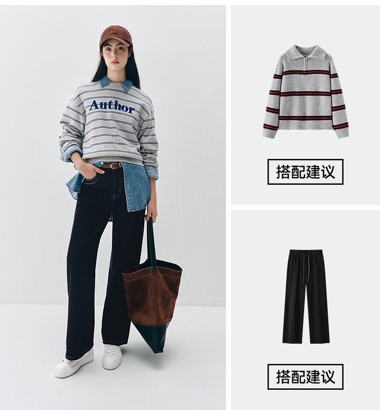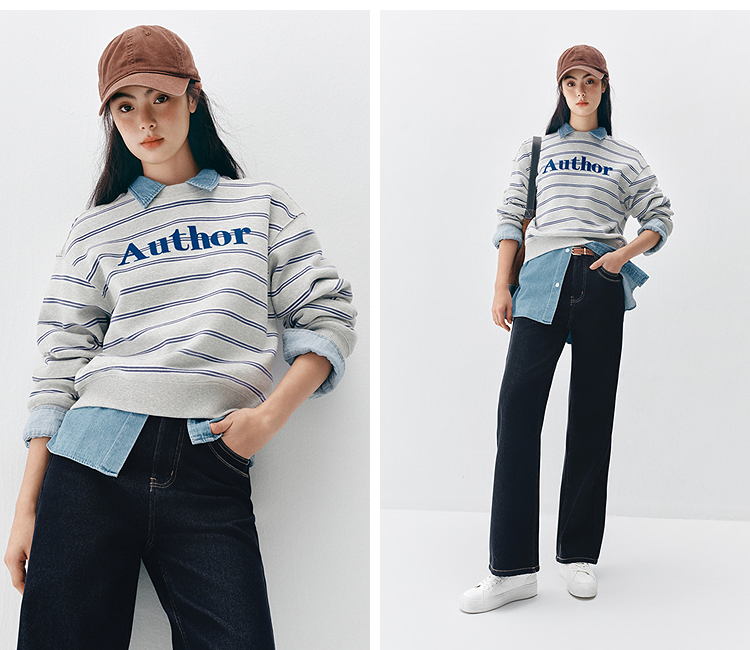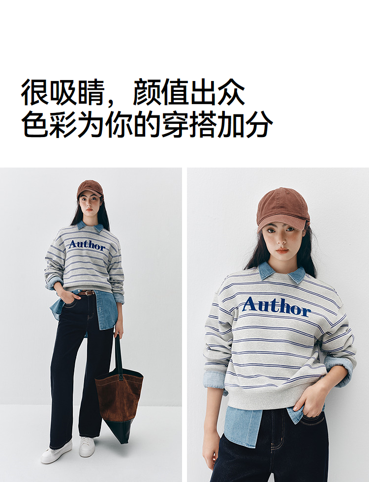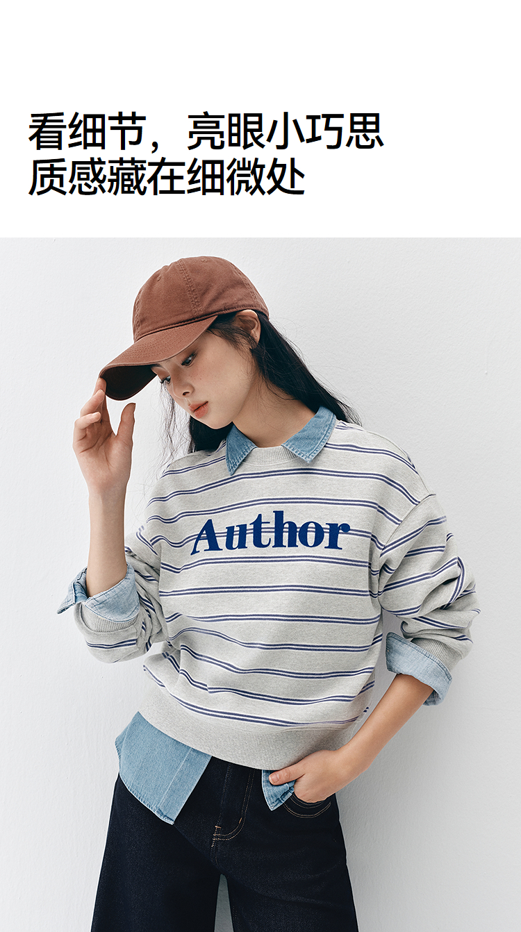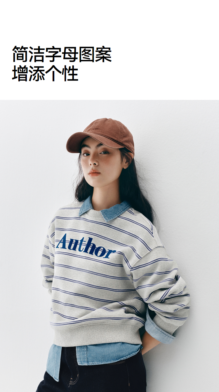 商场同款|森马卫衣女冬季条纹字母抓绒2025新款时尚ins潮流套头衫