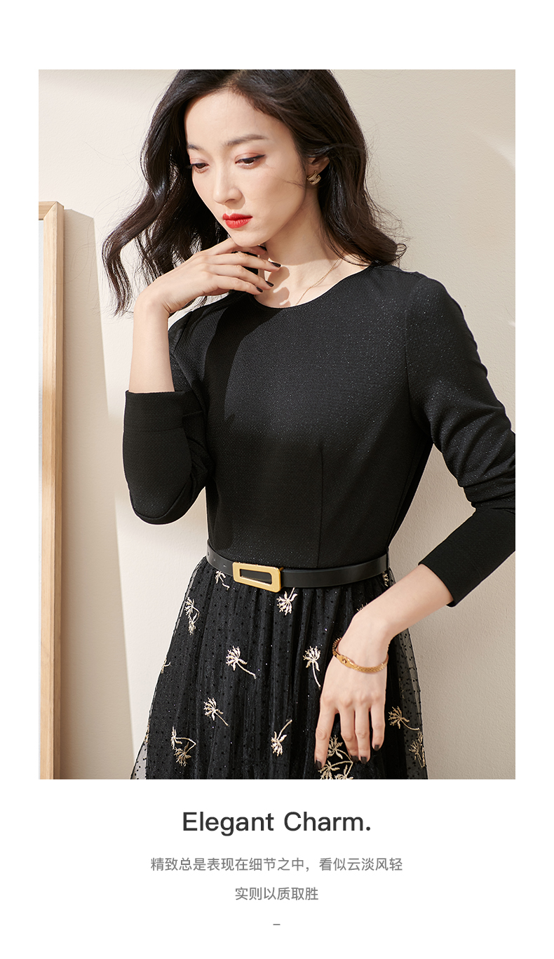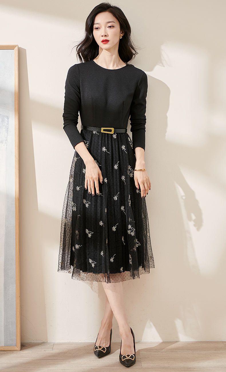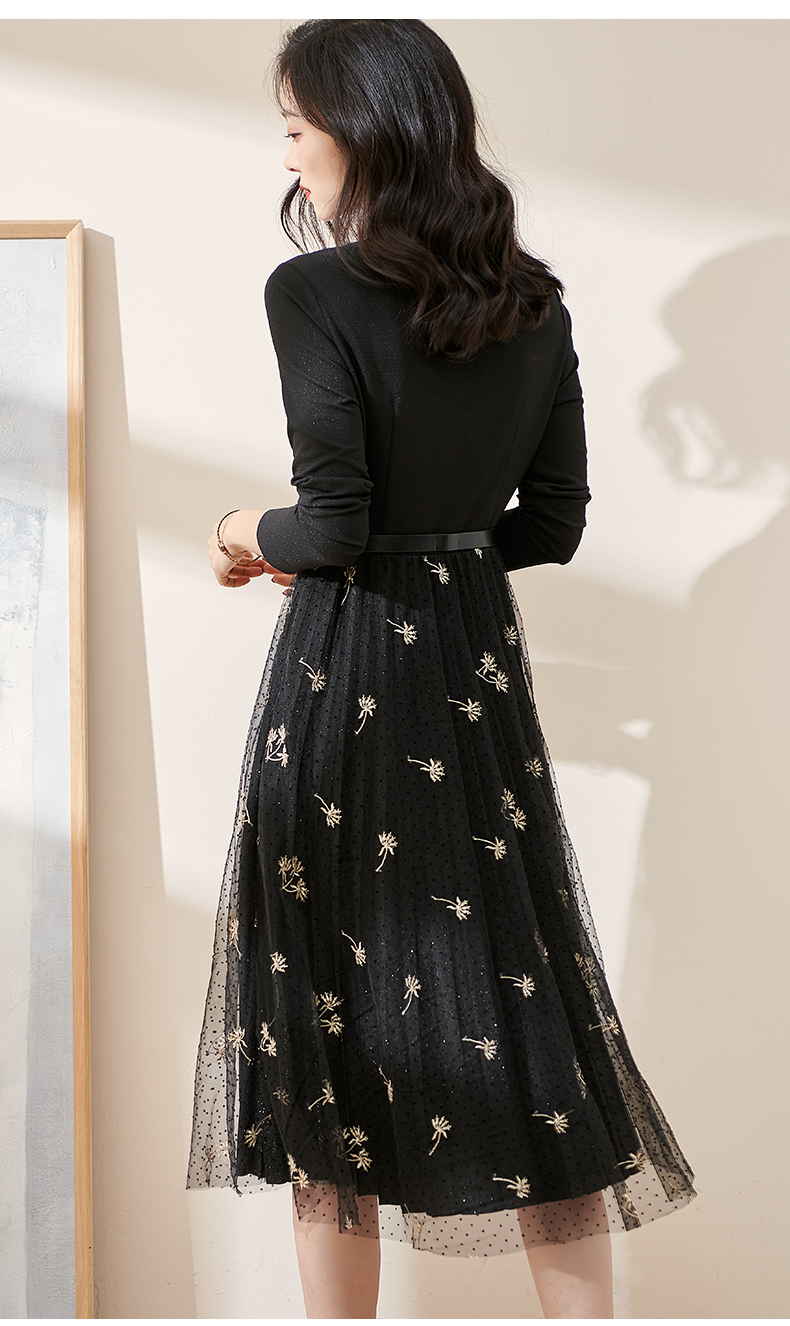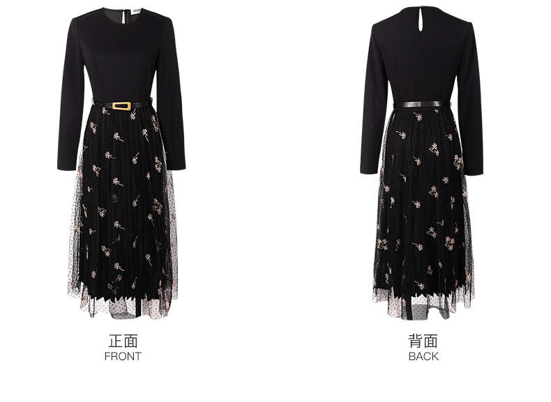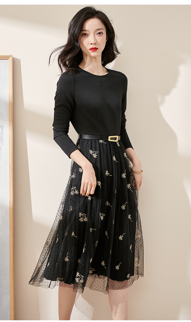 剩S/M/XL 米思阳2026春新款气质淑女拼接网纱连衣裙显瘦中长飘逸裙子0520