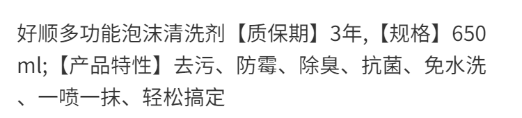 好顺万能泡沫清洗剂免洗 汽车室内饰座椅真皮革万能强力清洁去污