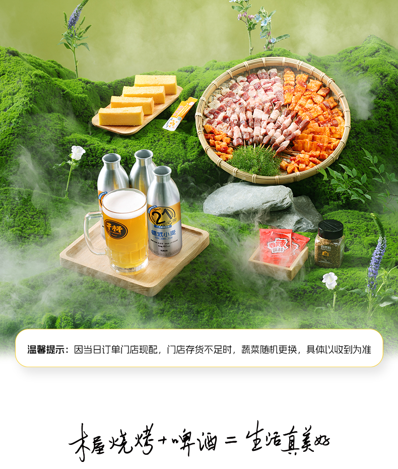 木屋烧烤半成品套装,一键下单,使命必达。 -全国300家门店支持次日到店自提 -全国顺丰包邮,当日下单,次日顺丰送货上门(部分区域除外,实际以顺丰时效为准)