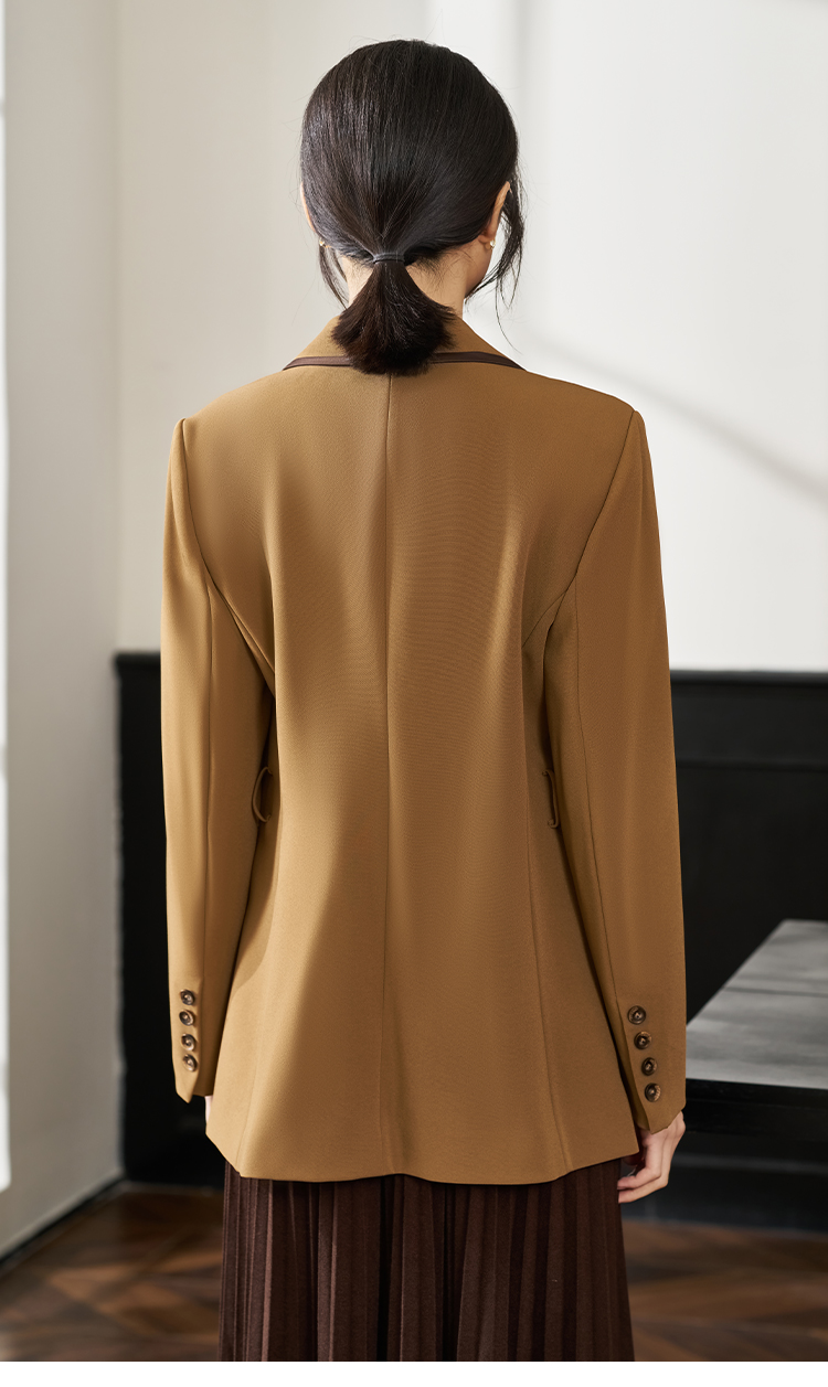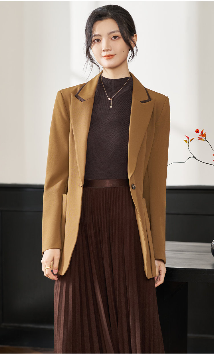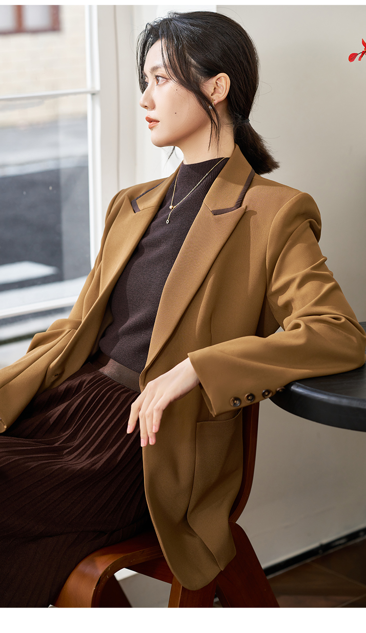剩S/XXL 米思阳2026春季新款时尚简约大气咖色西装通勤修身显瘦外套女0385