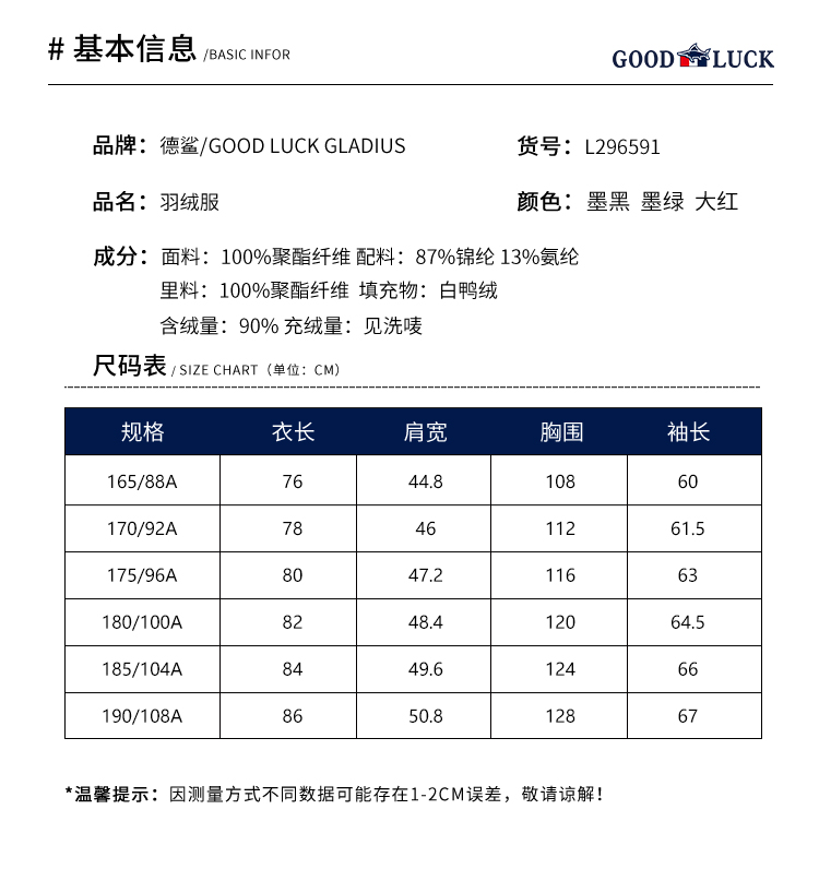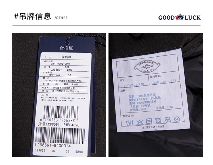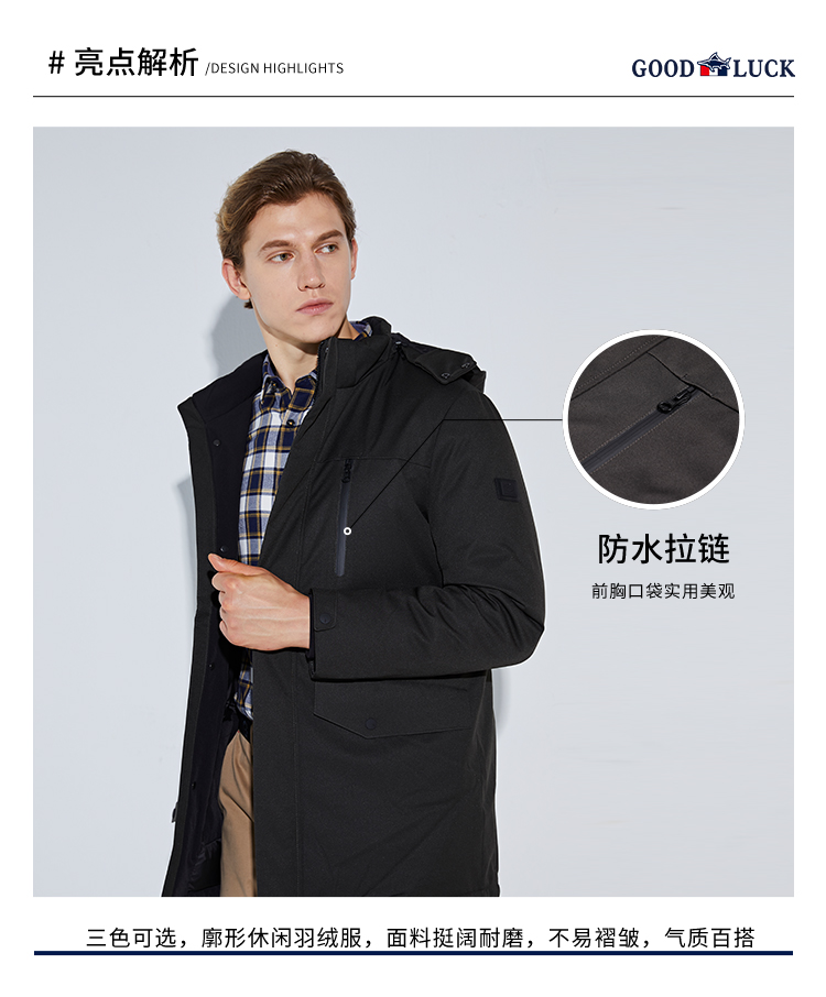 GOOD LUCK/德鲨三色可选连帽白鸭绒羽绒服L296591
