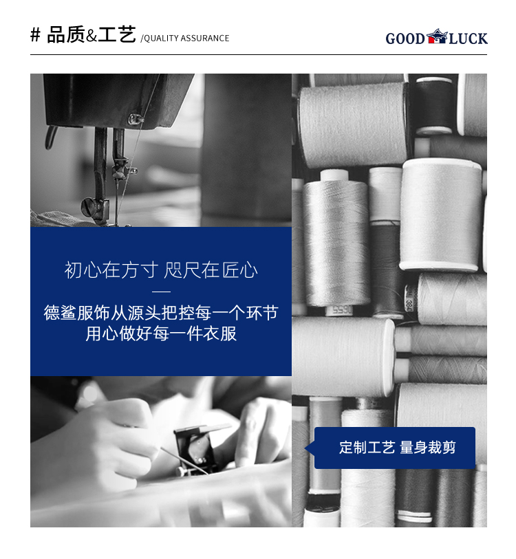- GOOD LUCK GLADIUS品牌由“浙江德鲨服饰有限公司”引进中国市场,经过多年发展,凭借完善的终端形象,规范化的销售管理,迅速赢得消费者的认可,引领国内消费流行,是成功人士首选男装品牌。