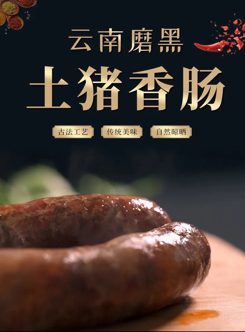 耕品哥|云南普洱传统手工黑猪腊肠(原味、麻辣、甜味)