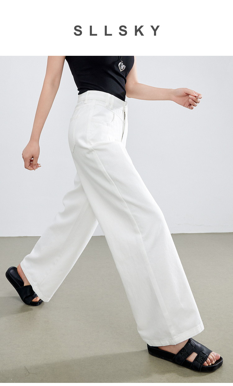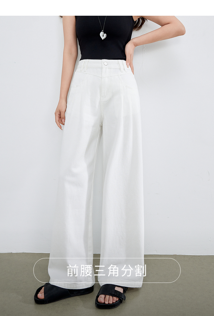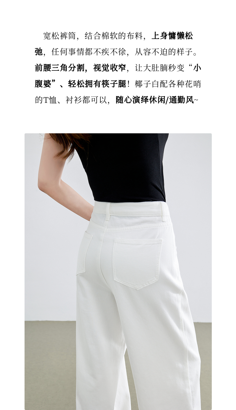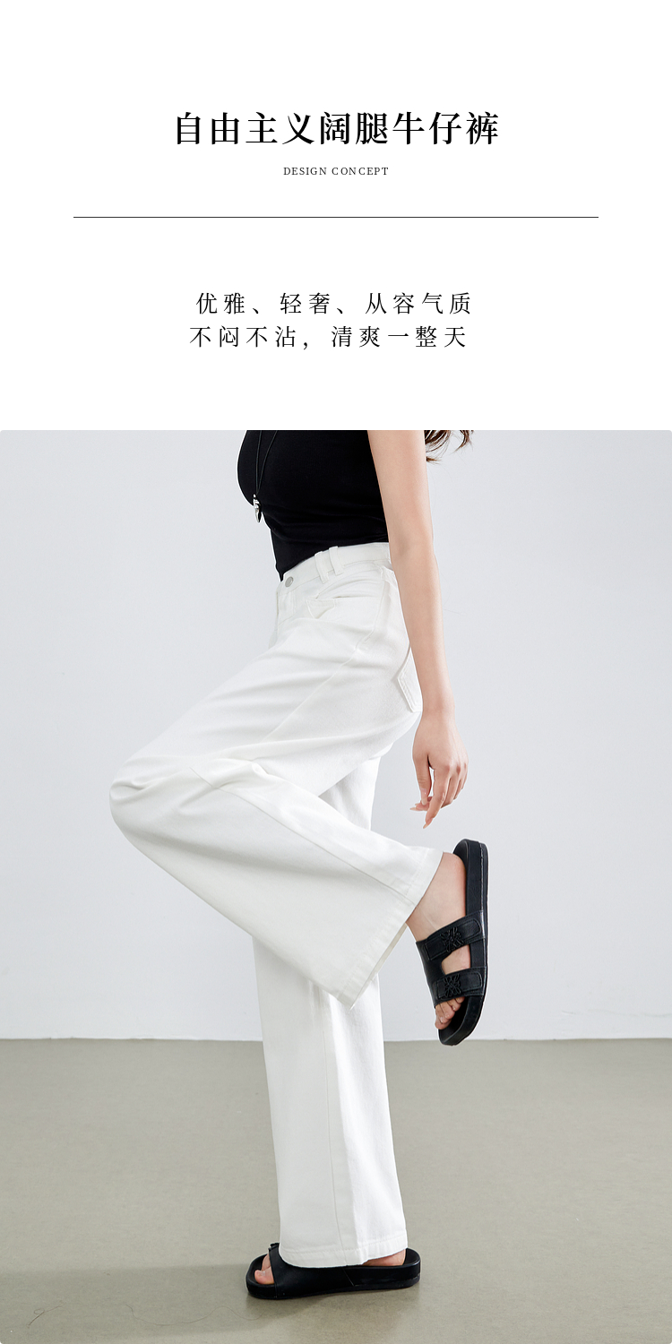 熙世界白色阔腿牛仔裤女夏季薄款2025新款高腰100%纯棉直筒休闲裤