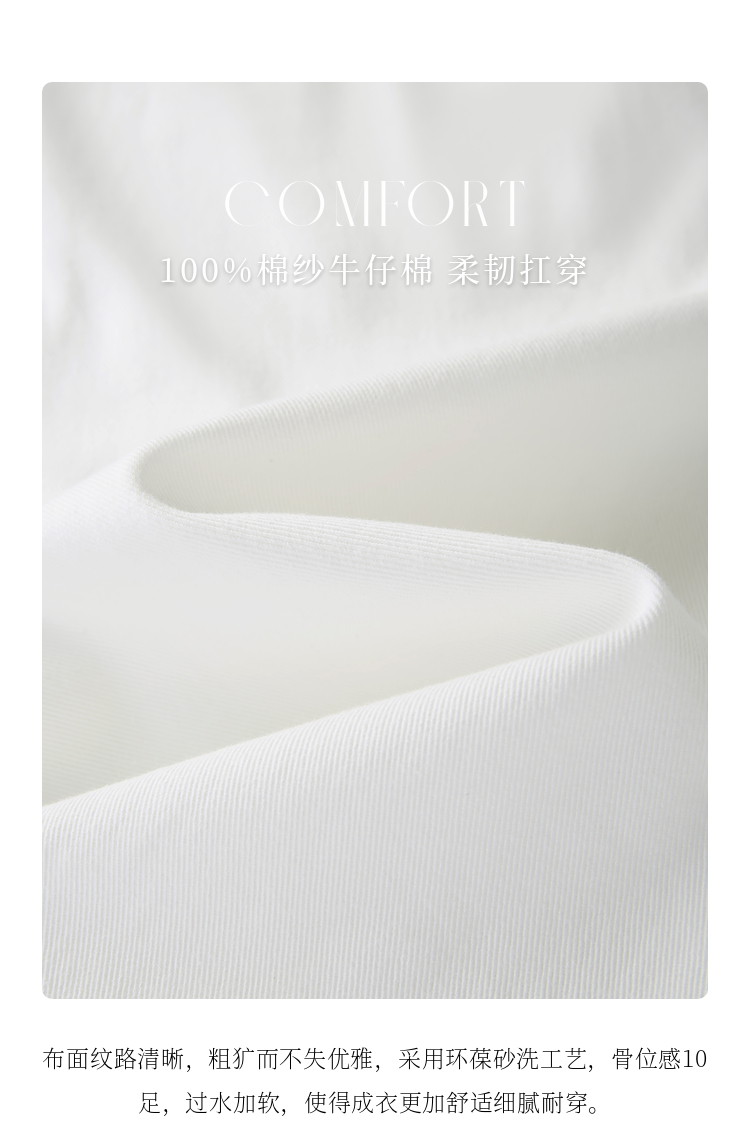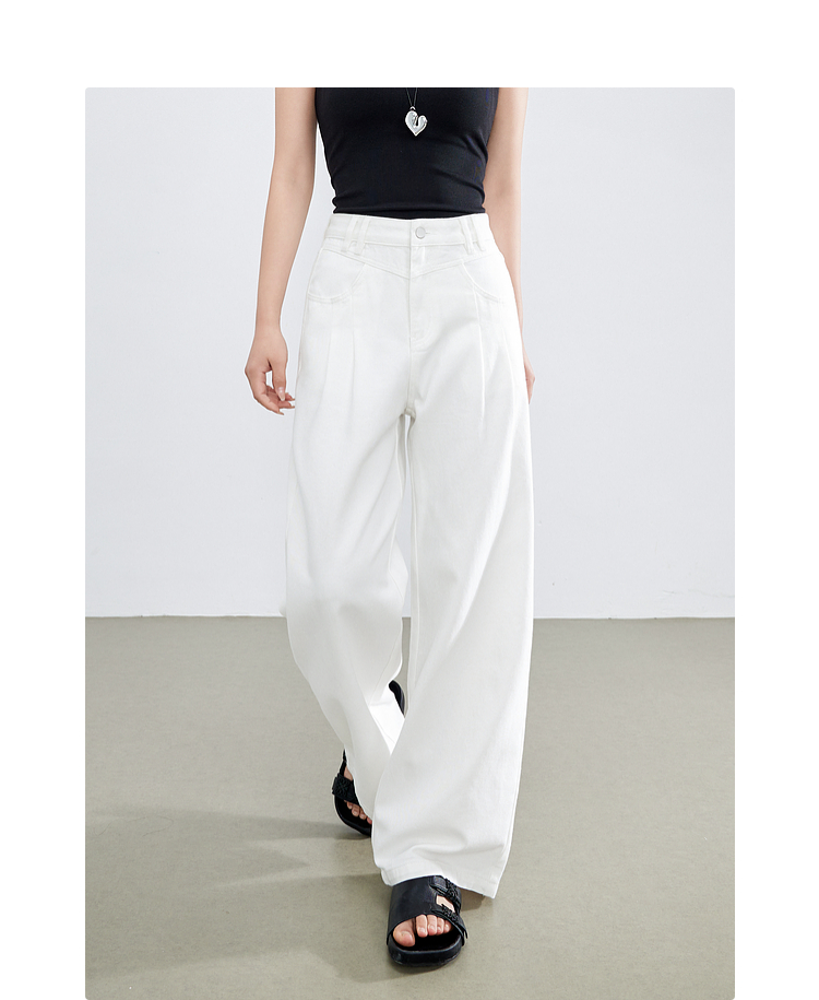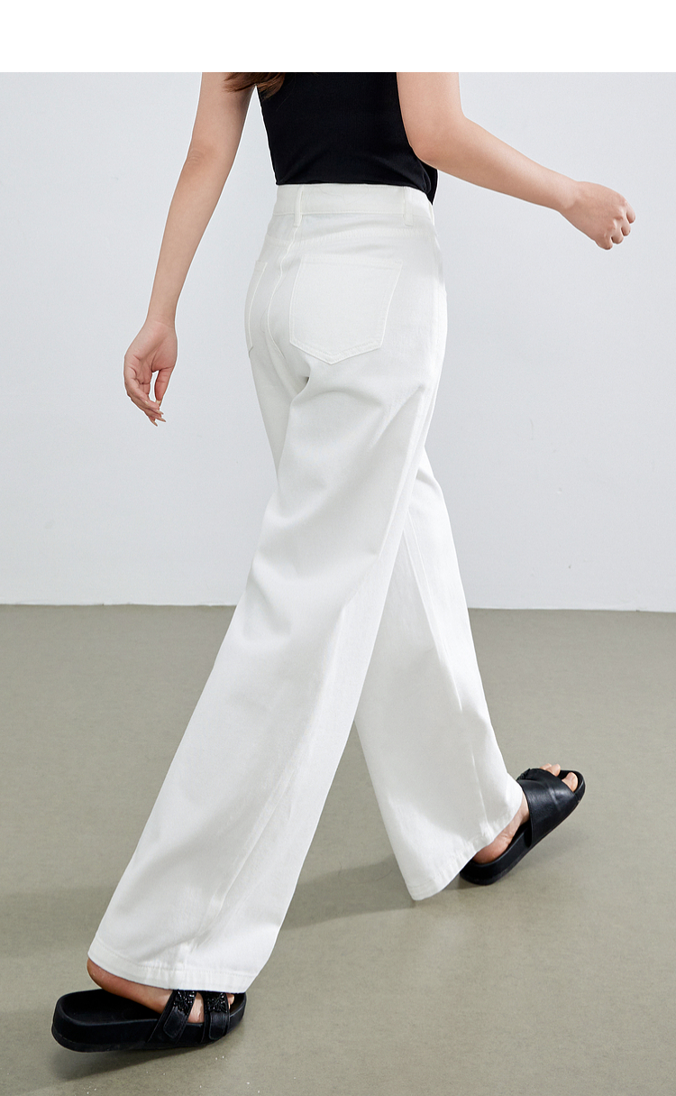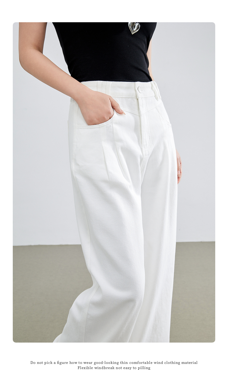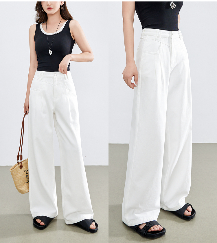 熙世界白色阔腿牛仔裤女夏季薄款2025新款高腰100%纯棉直筒休闲裤