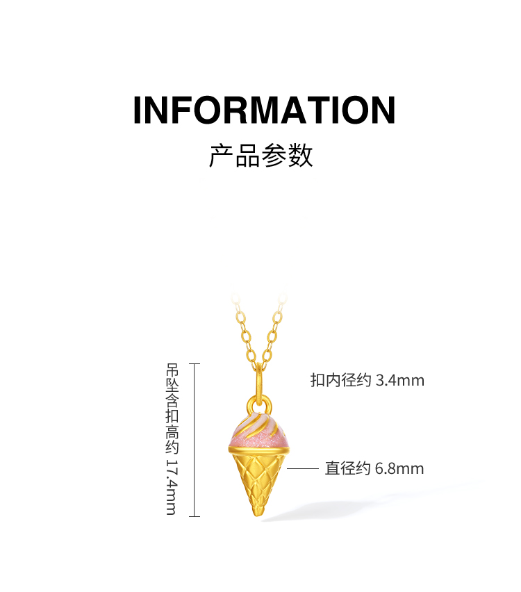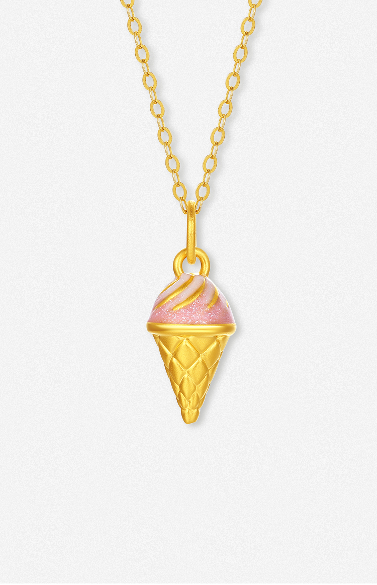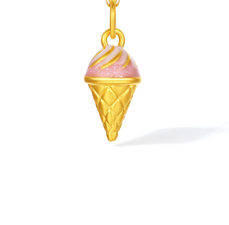 周六福黄金吊坠女款5d硬金冰淇淋珐琅吊坠定价节日礼物