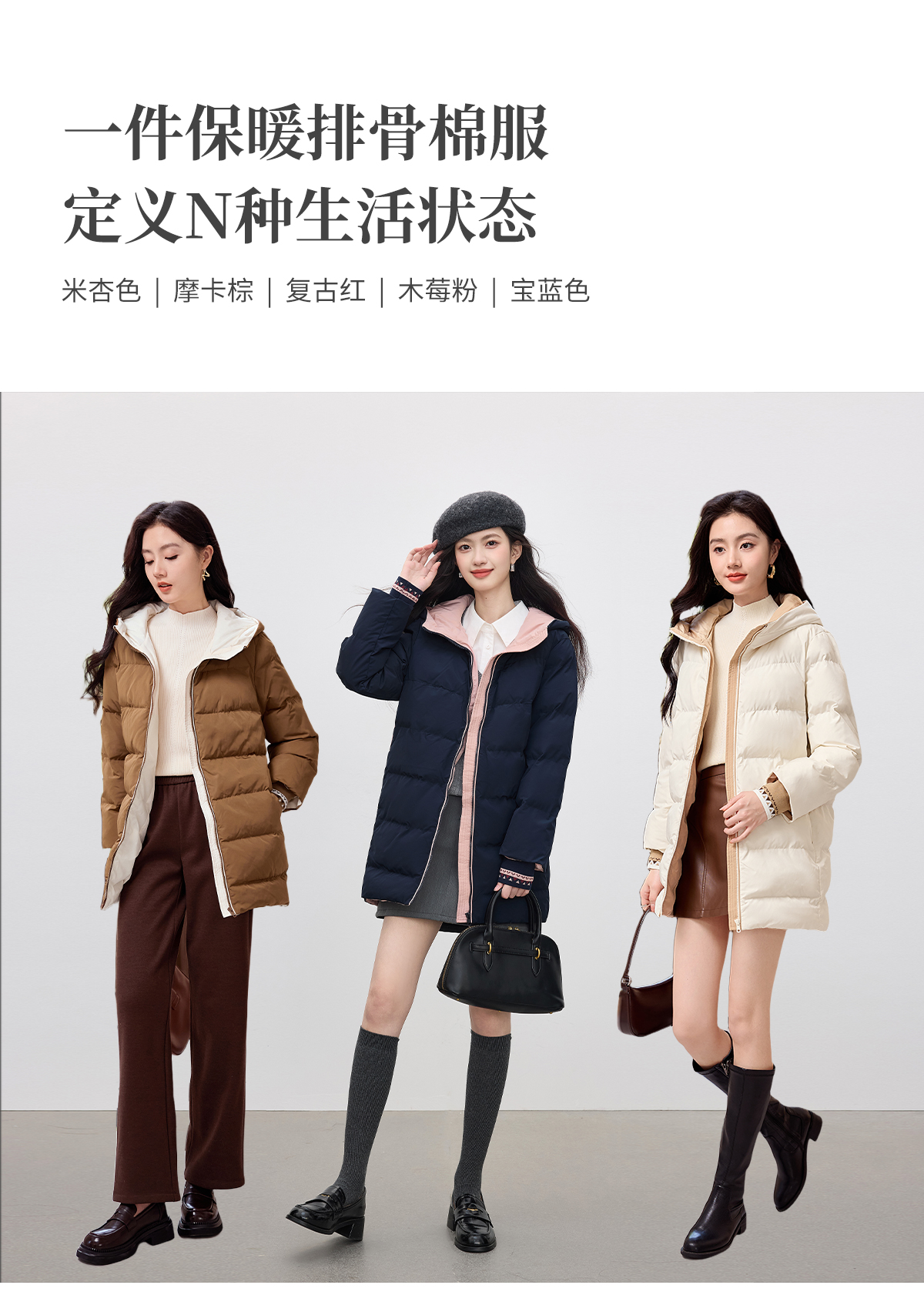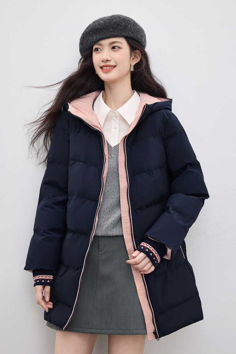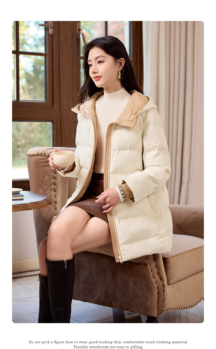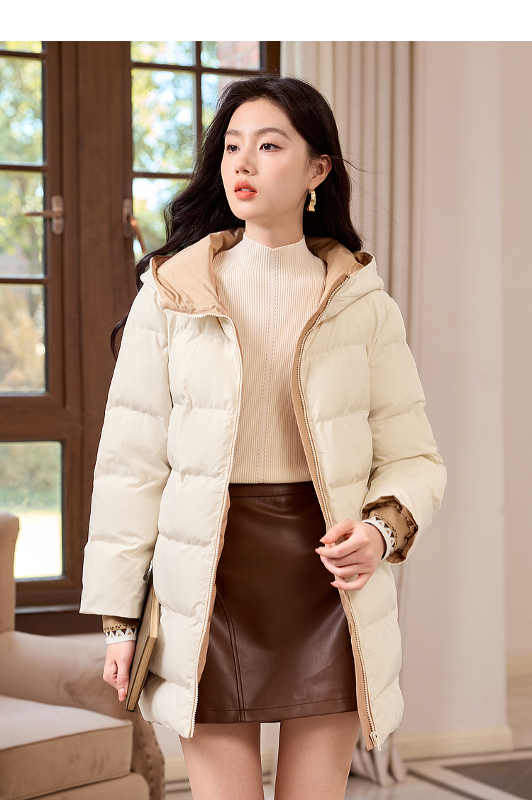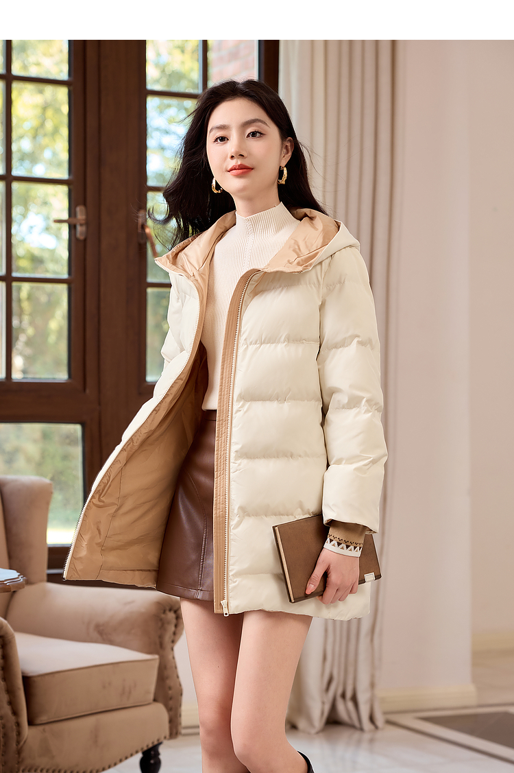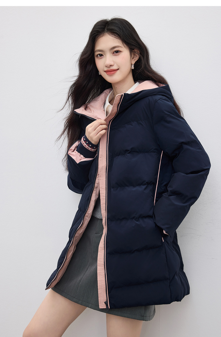 【周四狂欢价】熙世界羽绒棉服女冬季外套2025新款时尚中长款保暖连帽棉衣棉袄