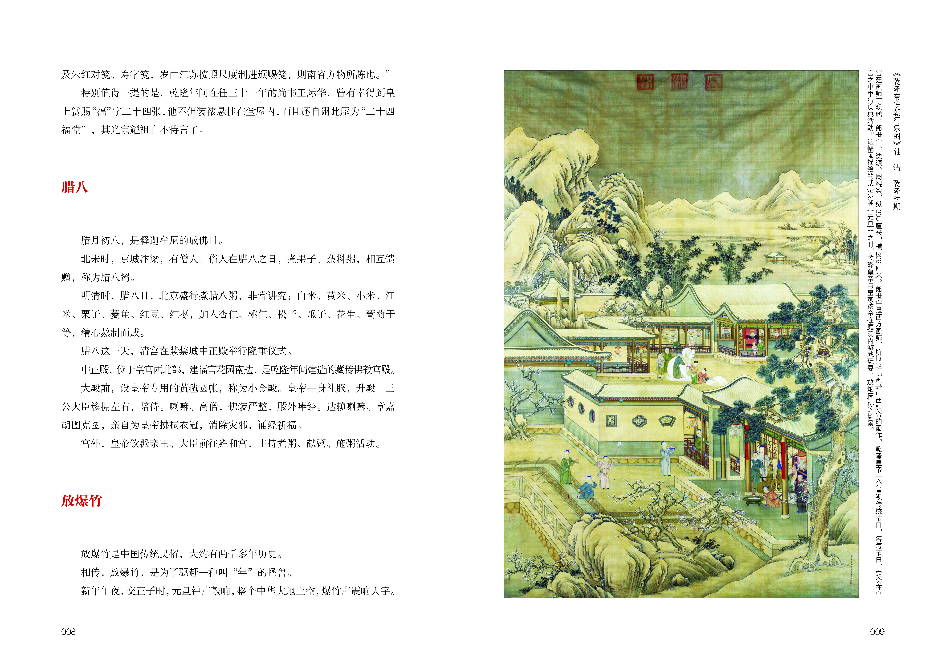 全书40万字的鸿篇巨制,辅以300幅珍贵的图片,从皇宫中讲述节令,从节令中体验皇家生活。