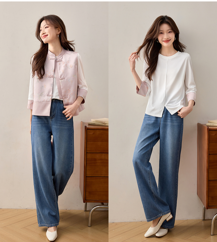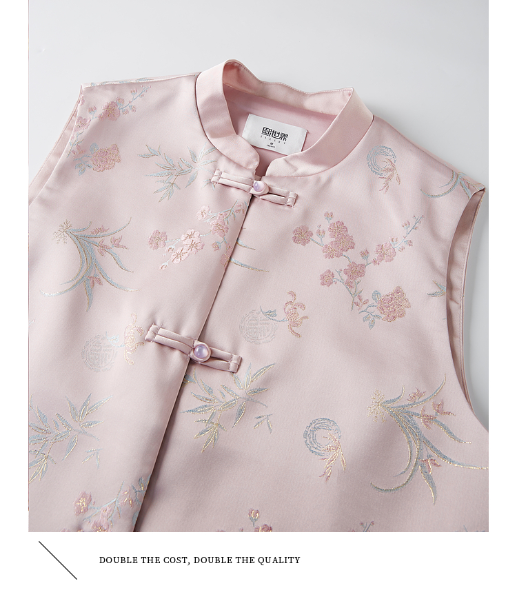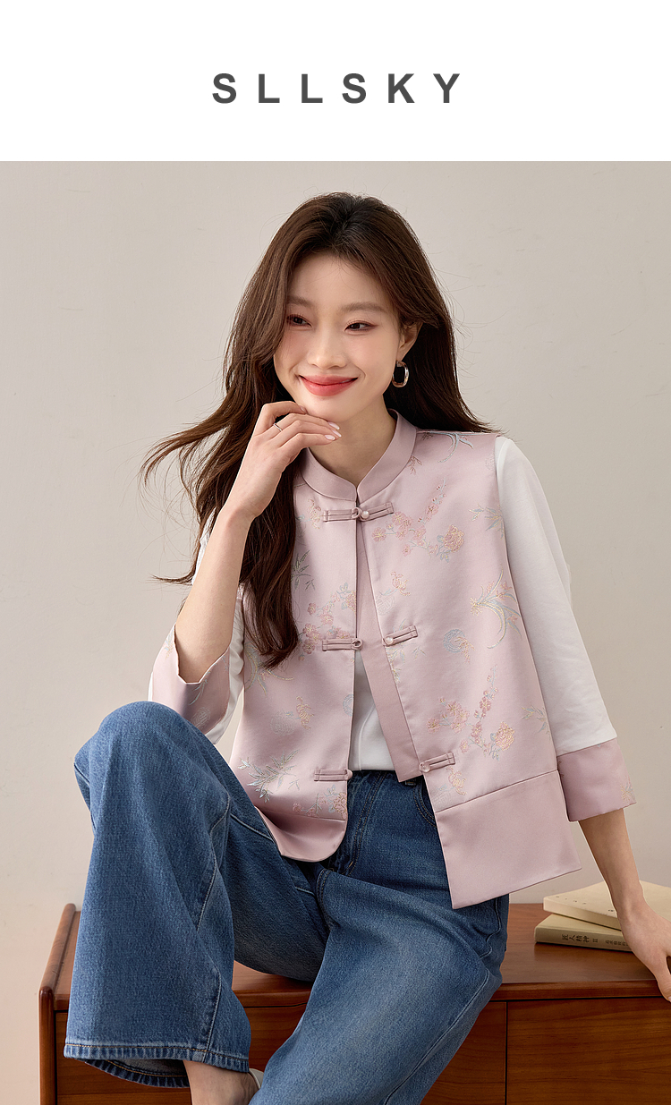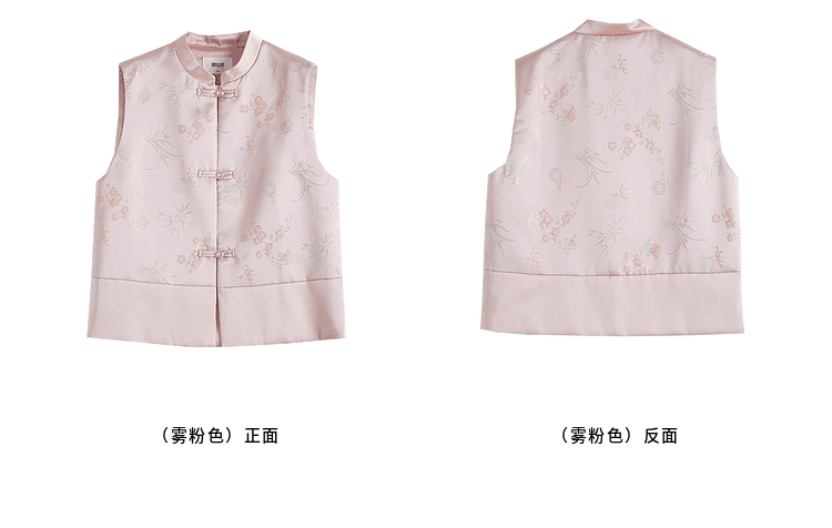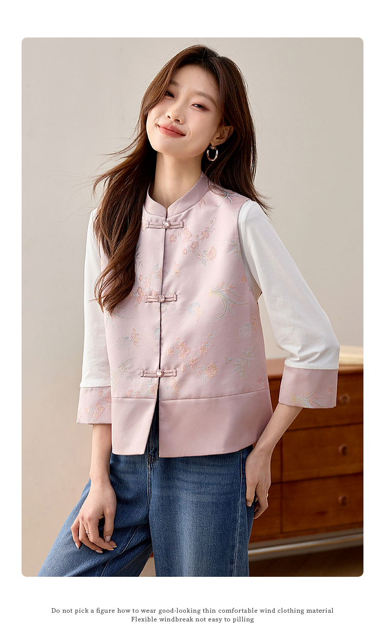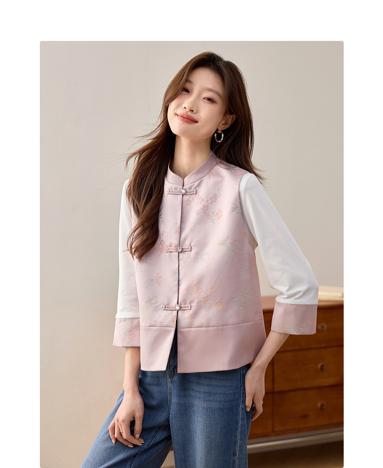【周四狂欢价】熙世界粉色新中式提花马甲背心女春新款国风盘扣刺绣坎肩开衫上衣