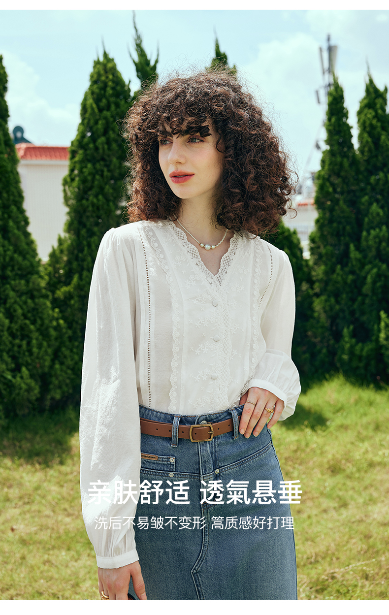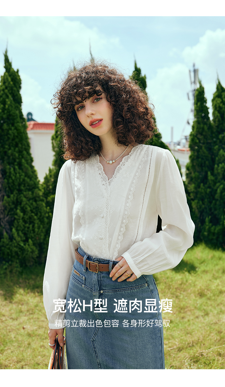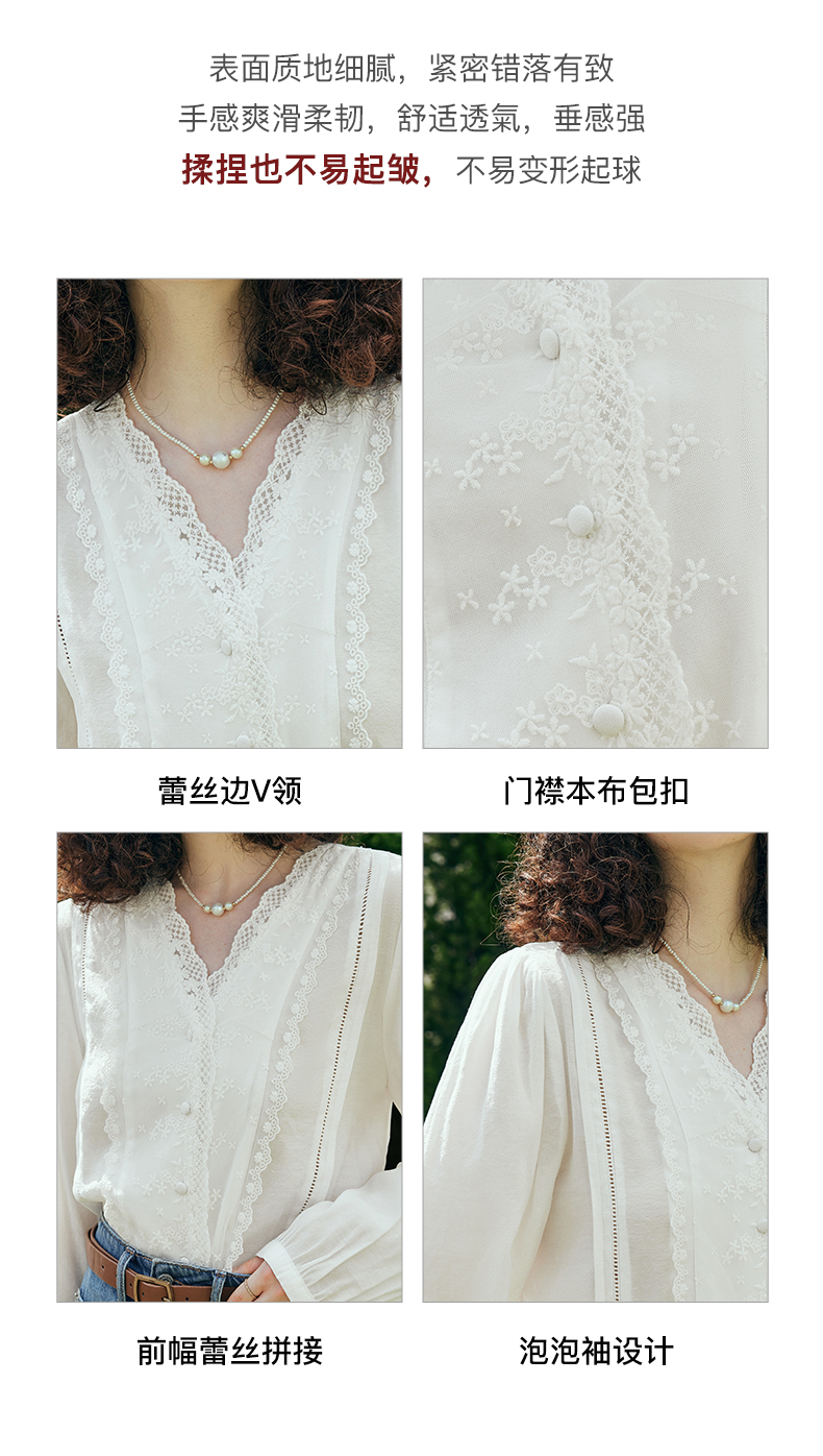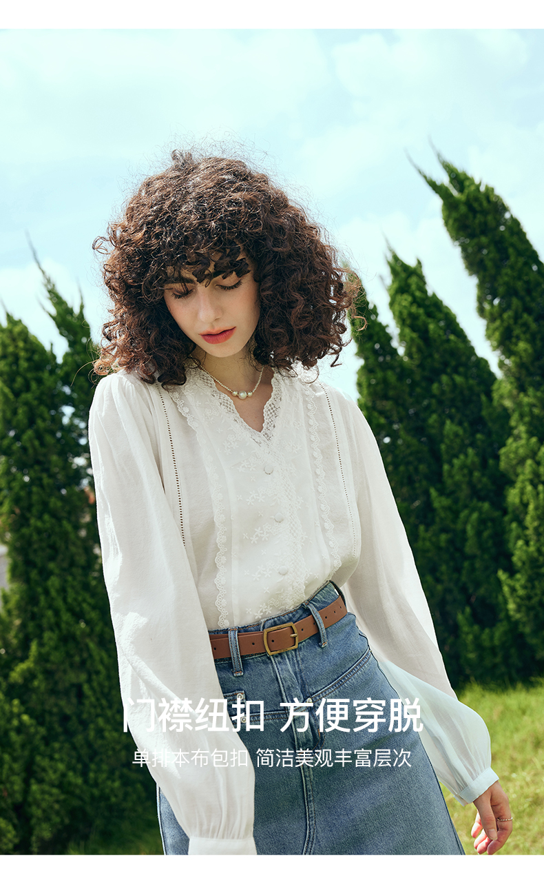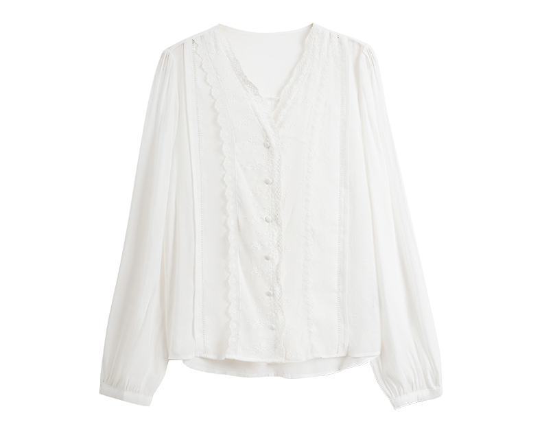 OLrain欧芮儿白色蕾丝雪纺衫女初秋2023新款宽松法式刺绣别致小衫