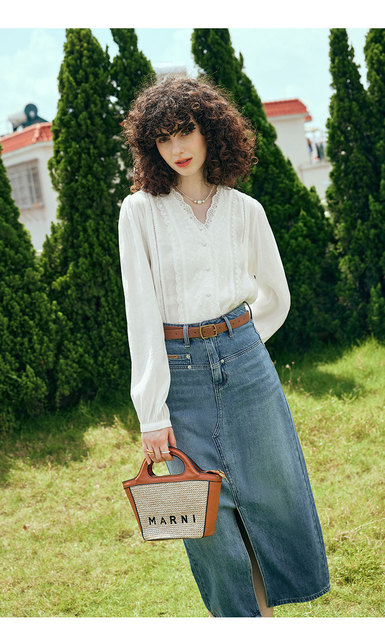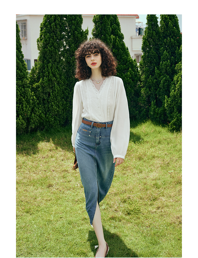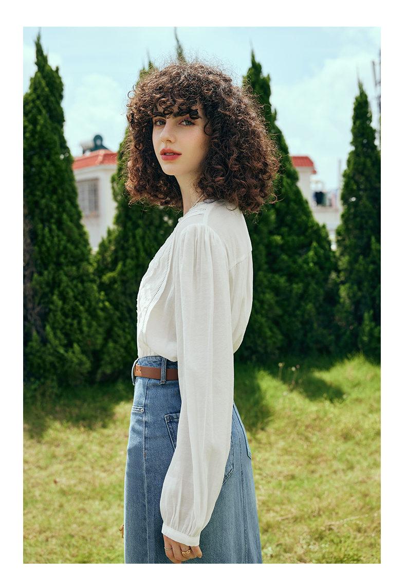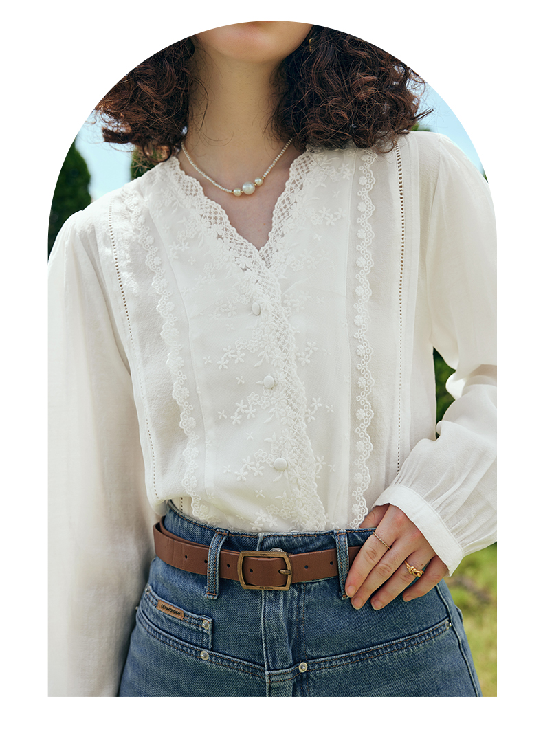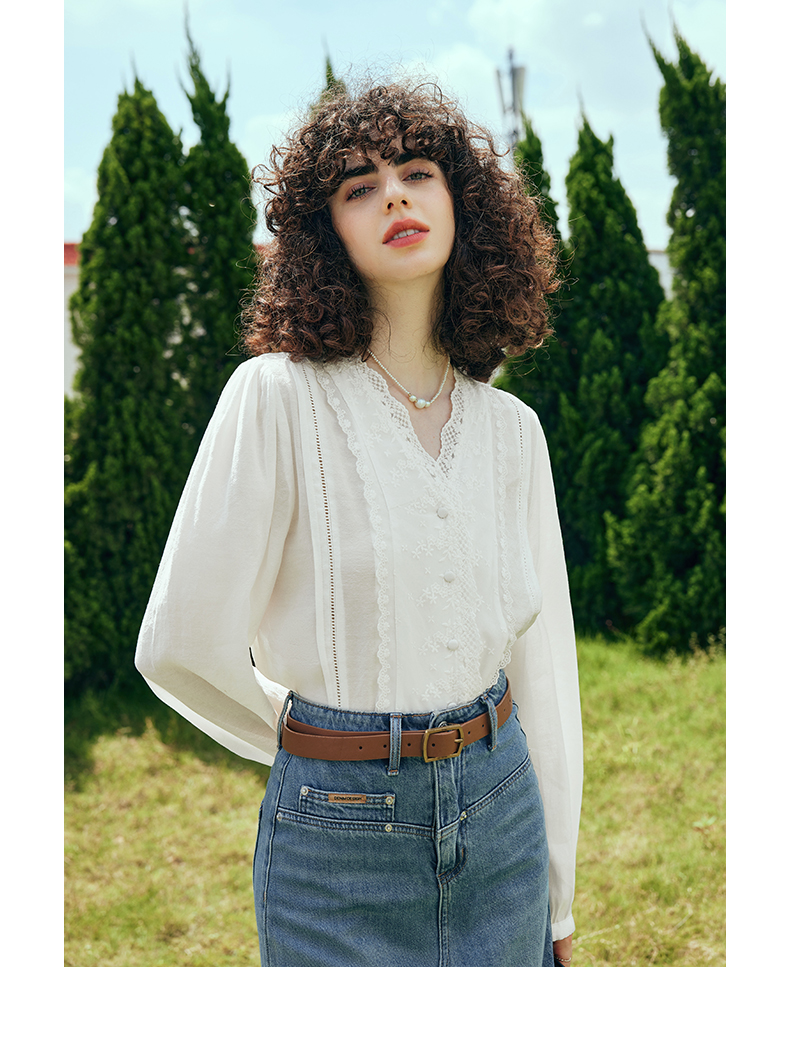 OLrain欧芮儿白色蕾丝雪纺衫女初秋2023新款宽松法式刺绣别致小衫