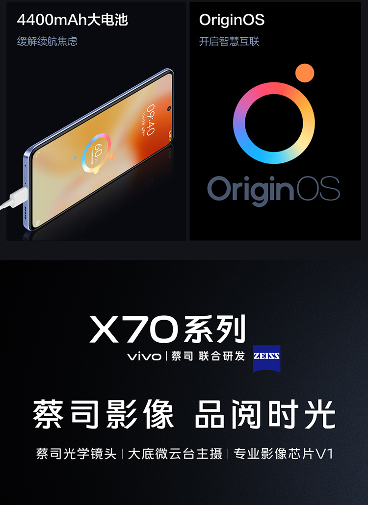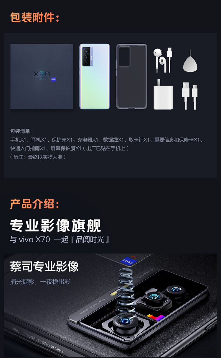 vivo X70 旗舰芯片 蔡司光学镜头 前置3200万高清 120Hz高刷 5G手机