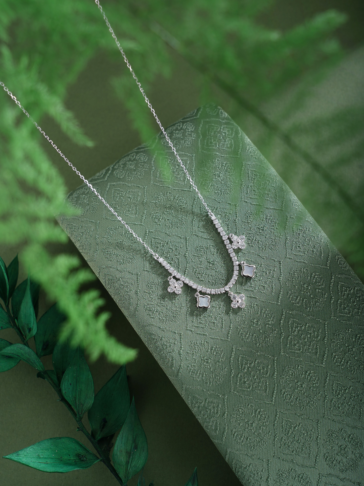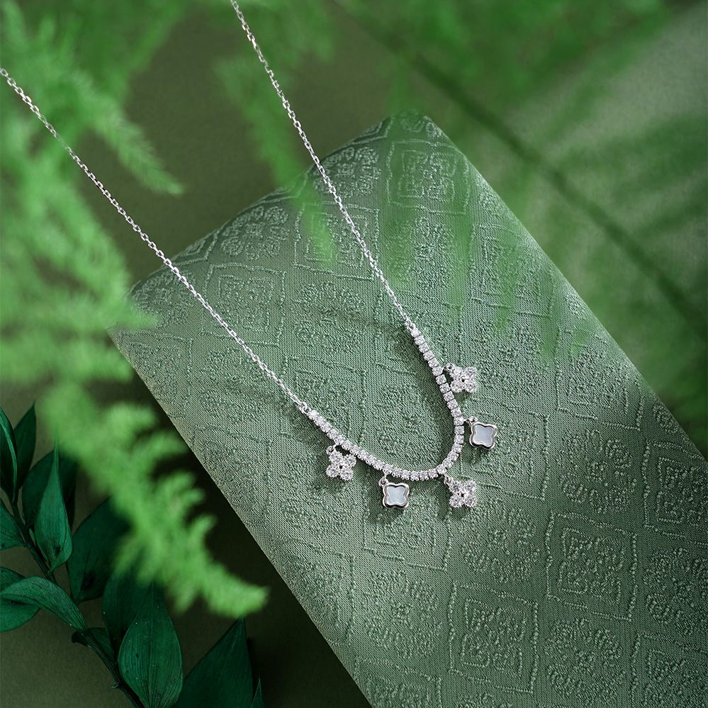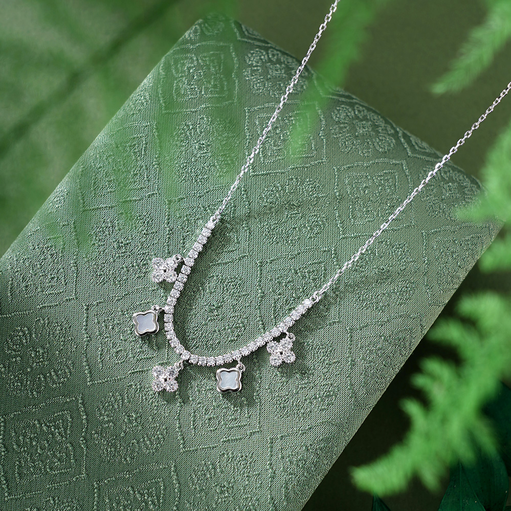 【寓意】:纯银四叶草项链,流苏轻曳,银光与灵动交织。象征幸运与希望,在时光流转中收获幸福与安宁。