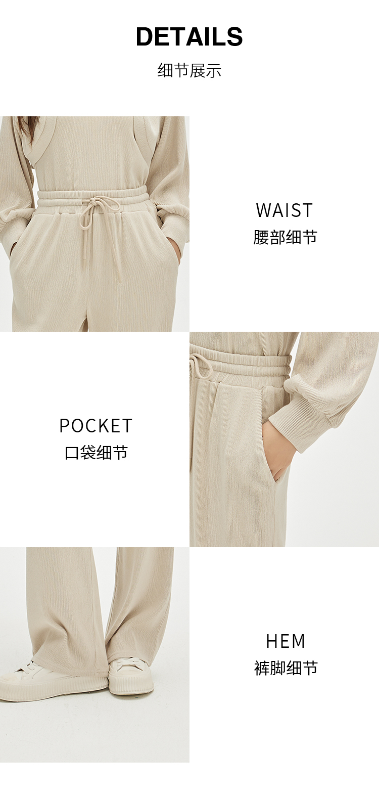 NUTS商场同款春秋款简约休闲松紧腰系带直筒百搭长裤女332071095