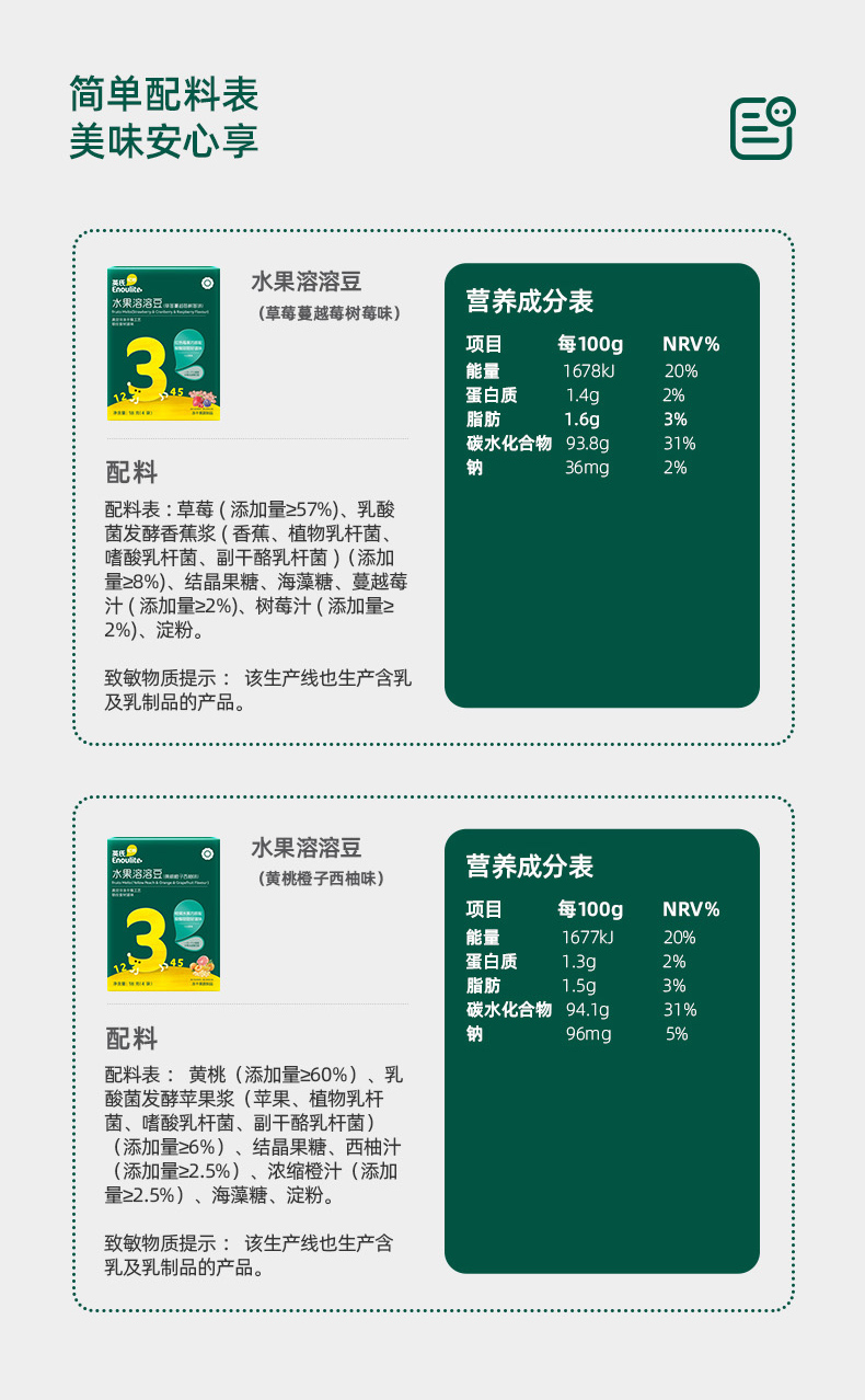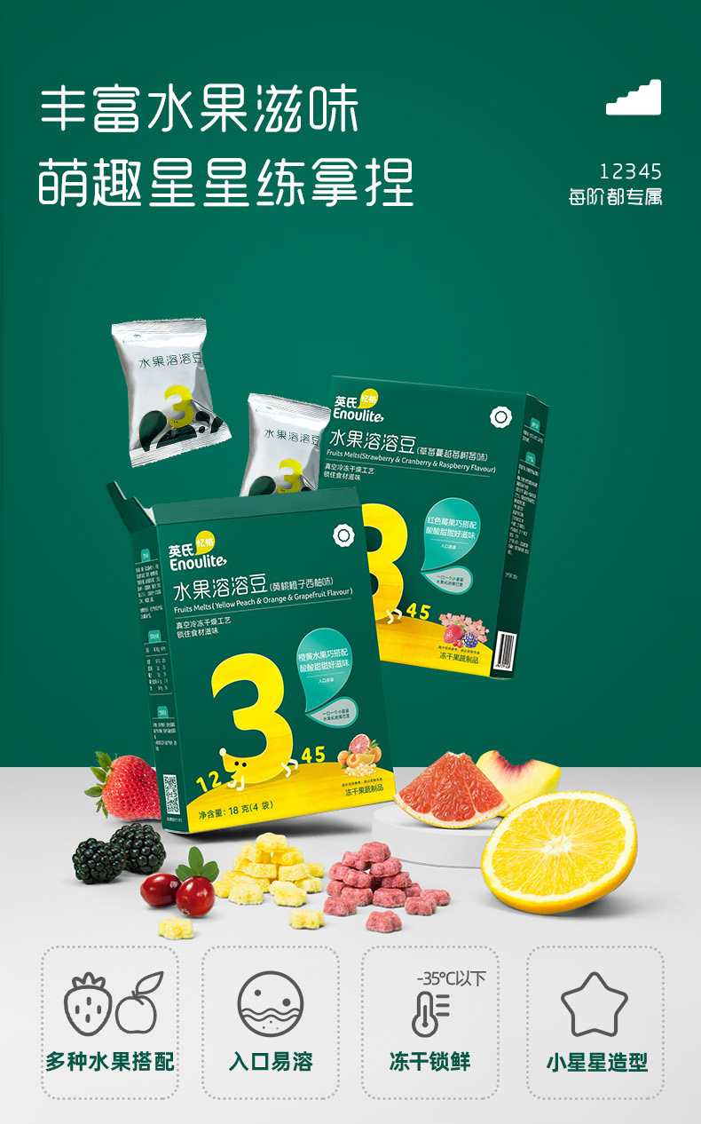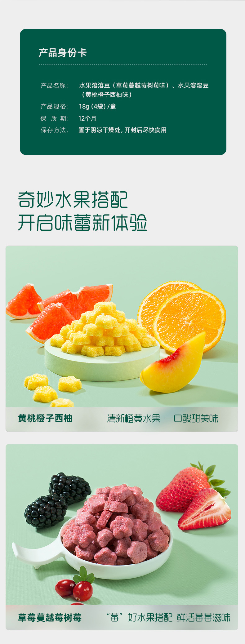 英氏草莓蔓越莓树莓味黄桃橙子西柚味水果果蔬溶溶豆儿童零食18g