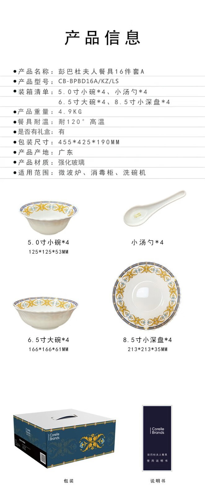 【分仓直发包邮】康宁冰萃玲珑彭巴杜夫人餐具16件套BCB-BPBD16B/KZ/LS