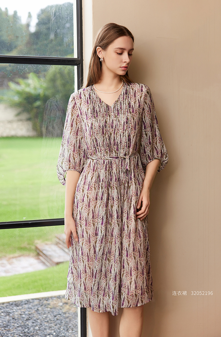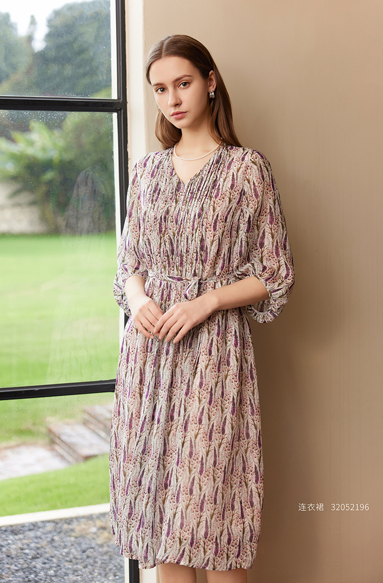 【真丝碎花连衣裙】25年夏季新品女士100%桑蚕丝连衣裙V领中长款裙子