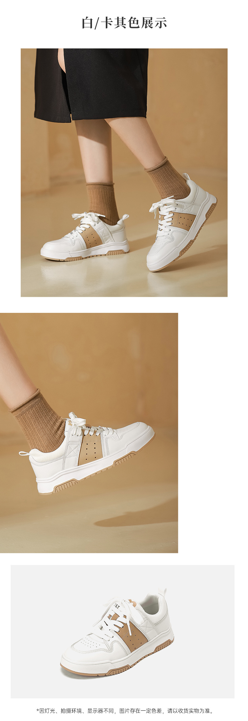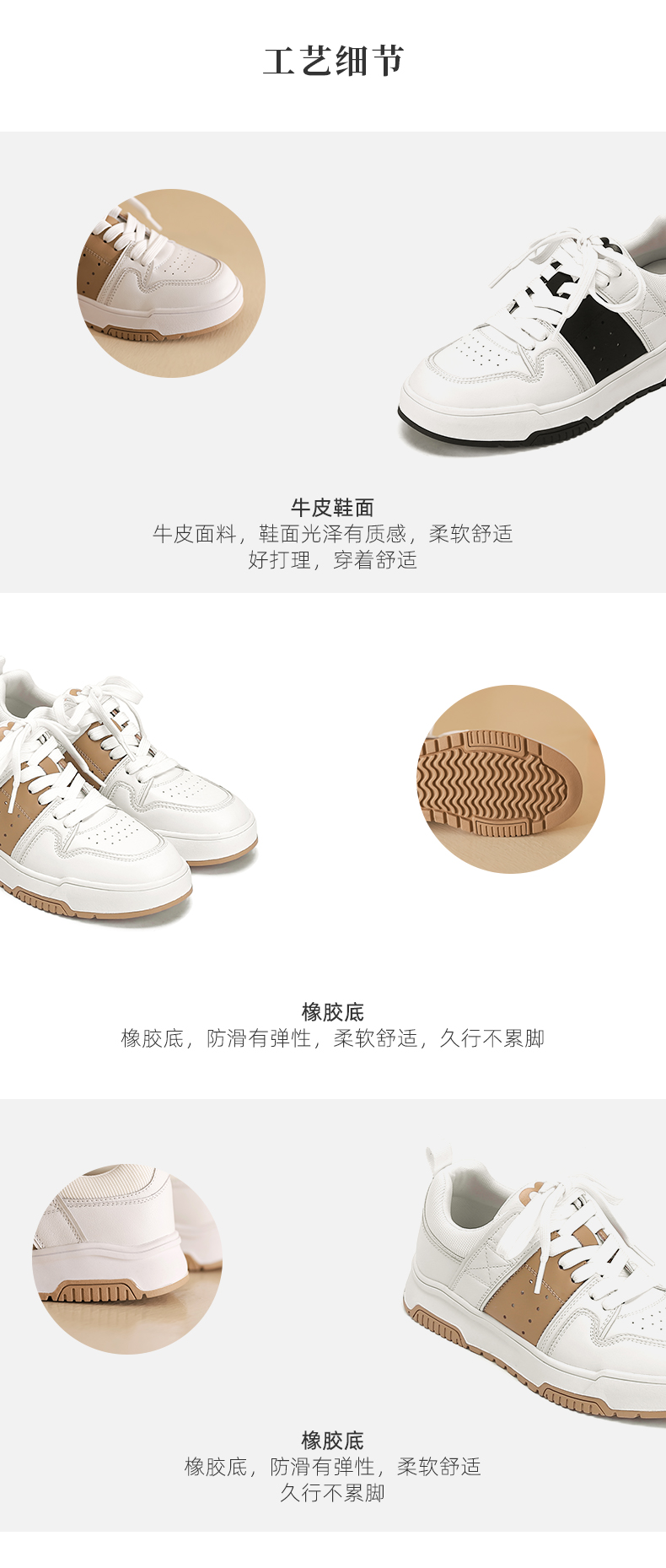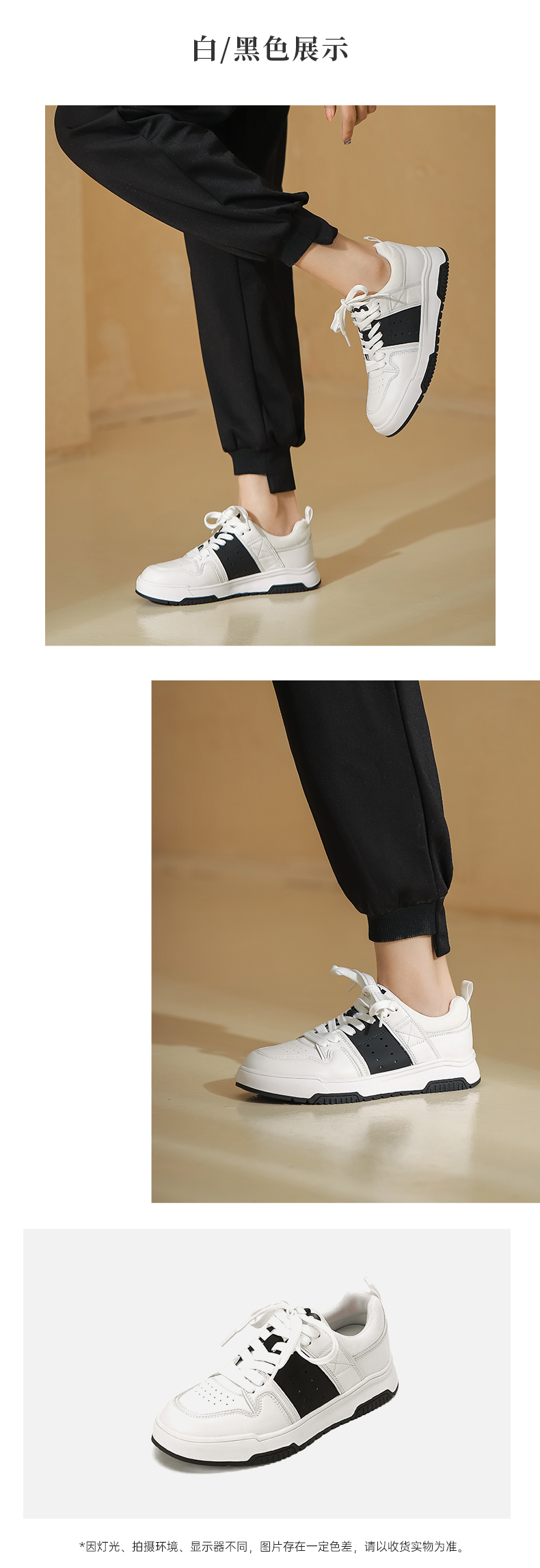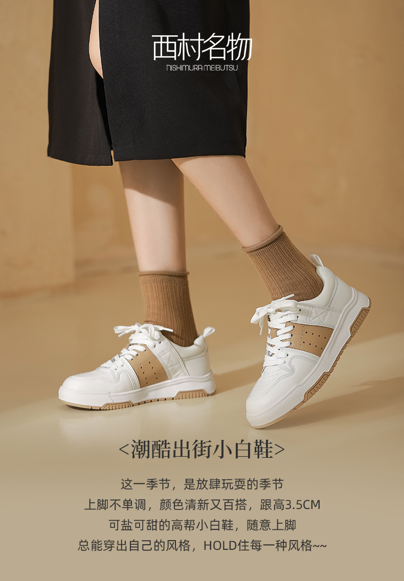西村名物2023春季新款真皮小白鞋百搭休闲轻便拼接运动板鞋12191
