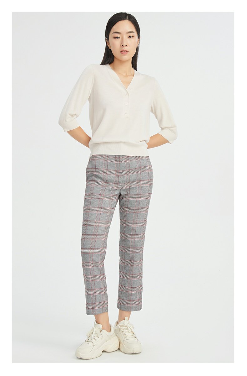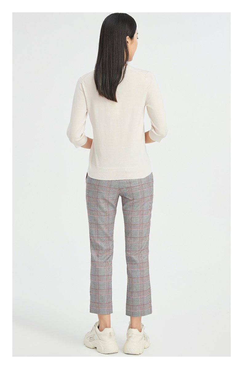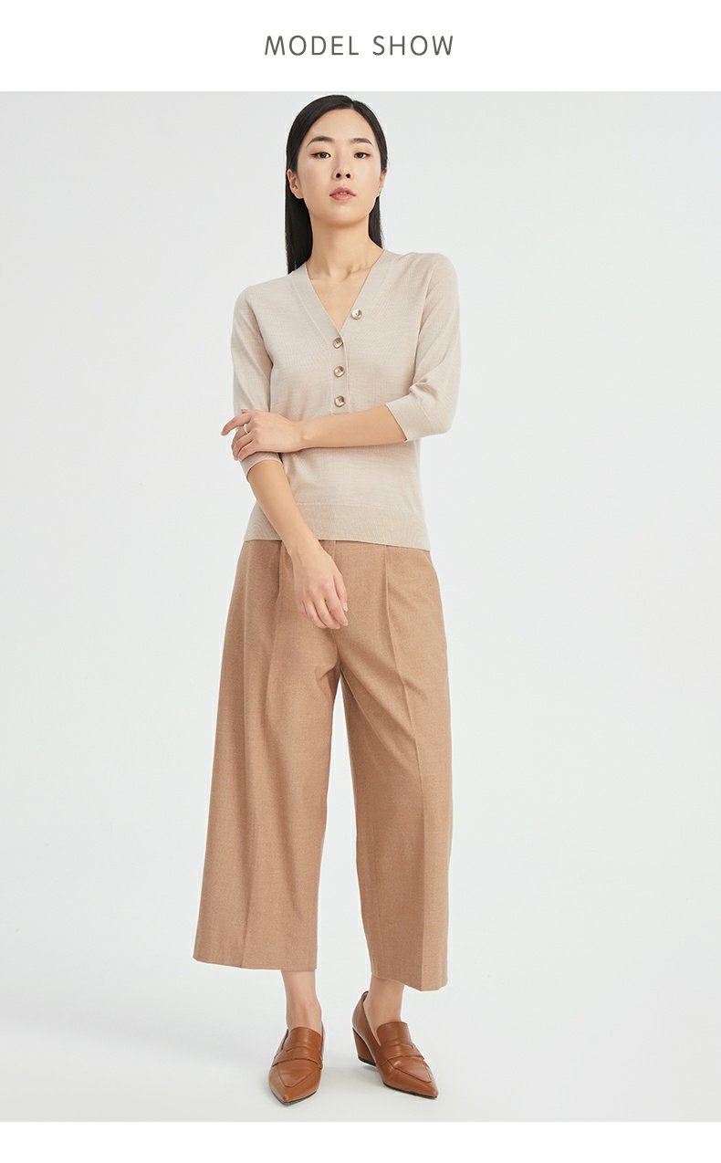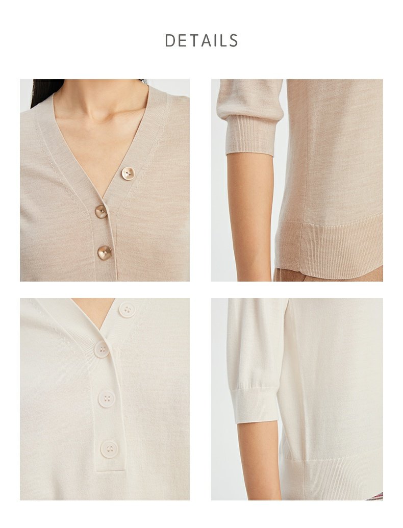 CARABLUE女装时尚简约纯色V领七分袖针织衫